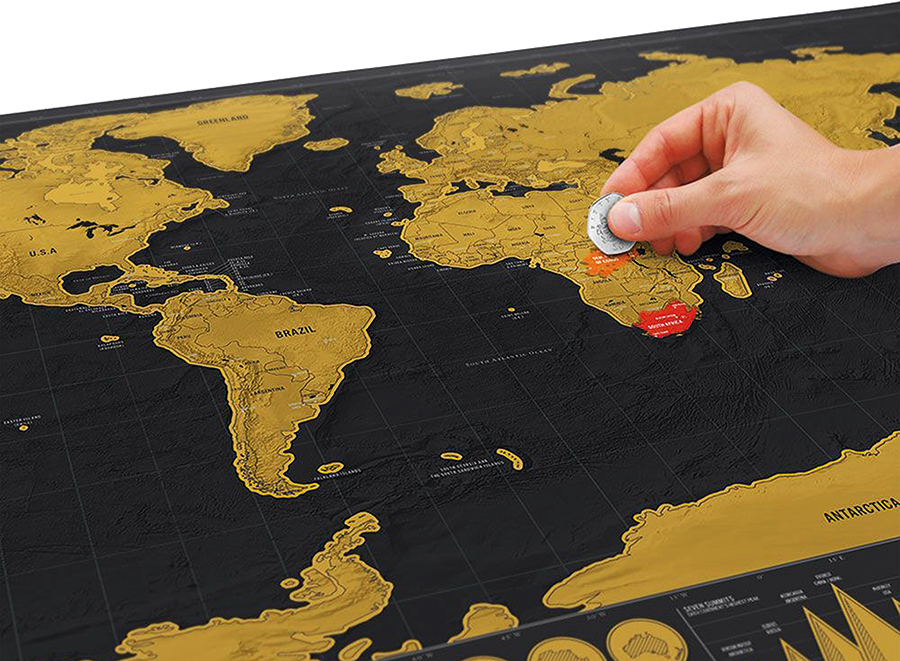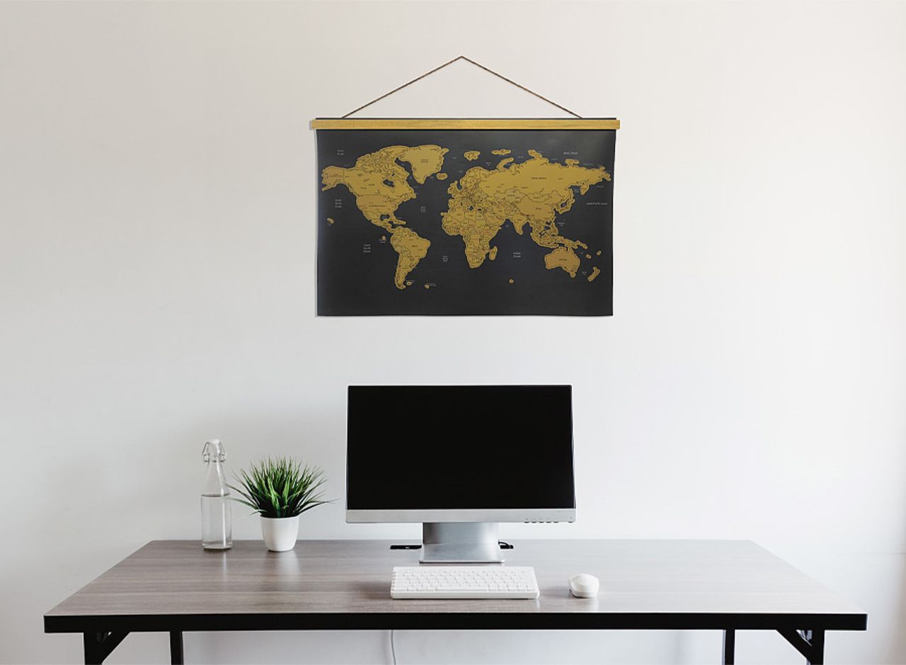 Weltkarte aus 200g / m2 beschichtetem Papier mit Laminierung. Goldfarbene Rubbeloberfläche mit Glanzöl. Wird mit einem Wandaufhängungssystem aus natürlichem Teakholz mit Magnetverschluss geliefert. Rubbelchip im Lieferumfang enthalten. Abmessungen der Karte: 60 x 40 cm. Die Vorteile in Kürze: - Das perfekte Geschenk für Weltenbummler und Vielreisende, jetzt auch als Werbeartikel erhältlich. - Der Wandaufhängungssystem kann auch für andere Poster, oder Plakate verwendet werden. - Papiergewicht von 200 g / m² für beste Widerstandsfähigkeit. - Personalisieren Sie das Bild mit den geografischen Gebieten Ihrer Wahl und / oder den Standorten Ihrer Niederlassungen ab bereits XXXX Stück. - Rubbelchip im Lieferumfang enthalten!