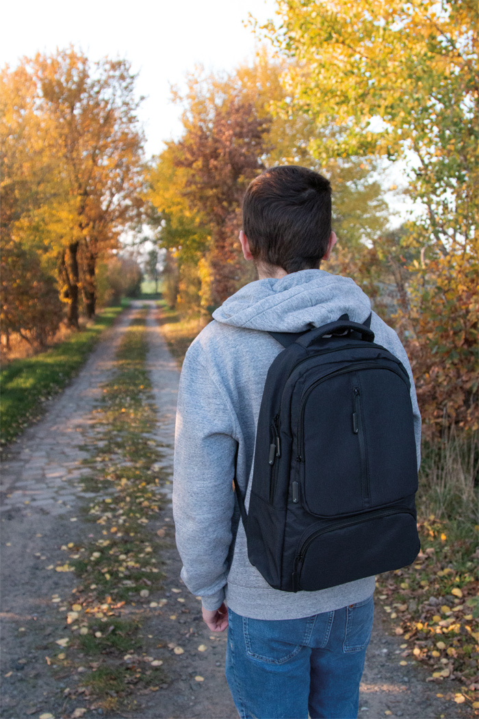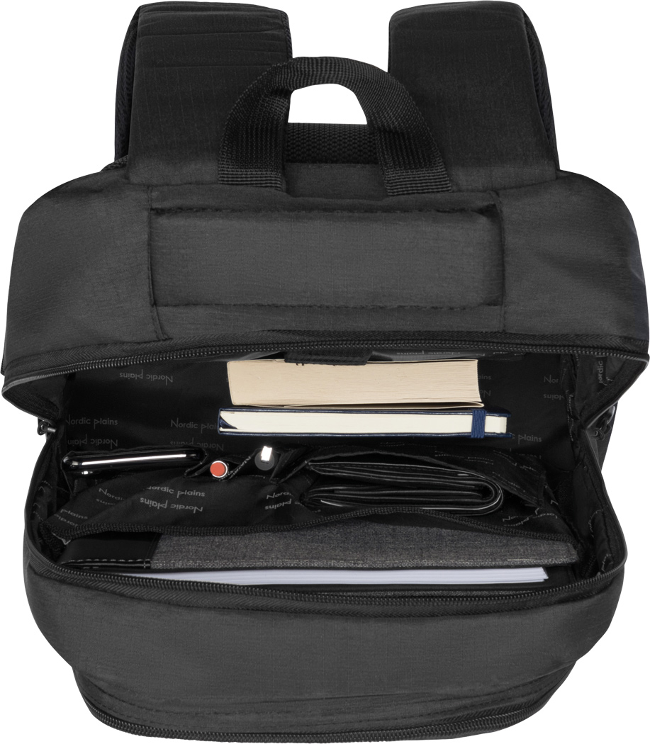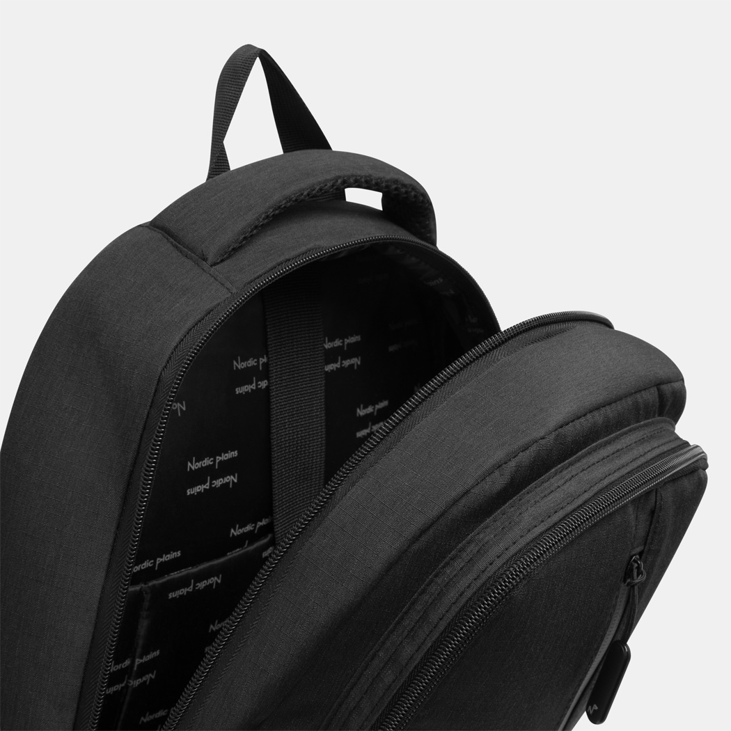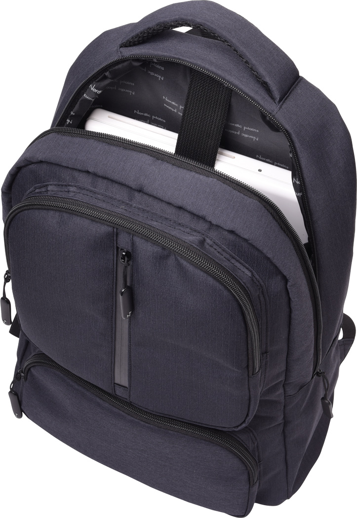 Rucksack AMSTERDAM: 3 Reißverschluss-Vorfächer, Reißverschluss-Hauptfach mit gepolstertem Innenfach für Laptop oder Tablet, Organizer mit 5 Steckfächern, gepolsterter Tragegriff, Trageschlaufe, gepolsterte Schultergurte in ergonomischer Form und gepolsterter Rückenbereich, Gurt als Reporterfunktion auf der Rückseite - ein Produkt der Marke Nordic plains