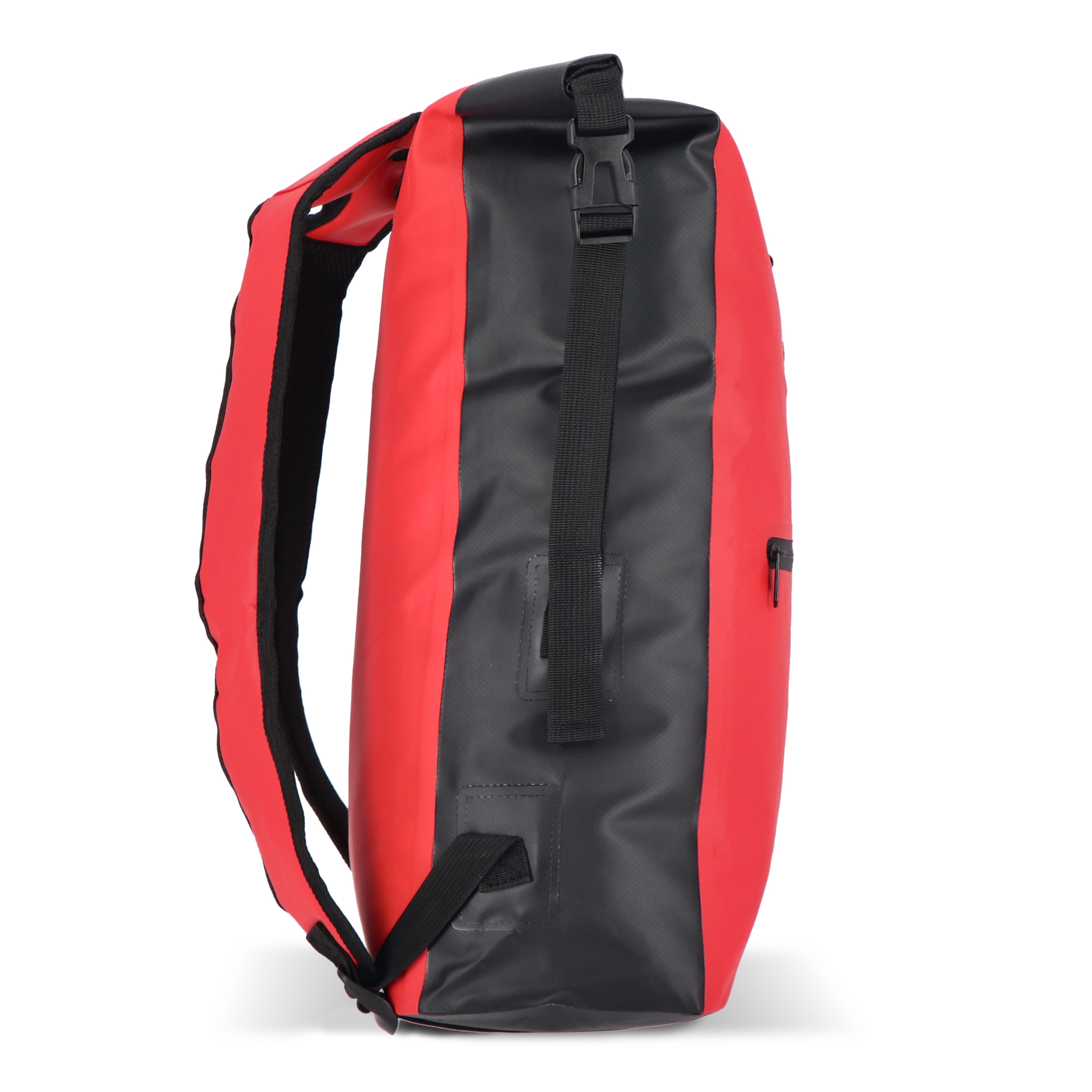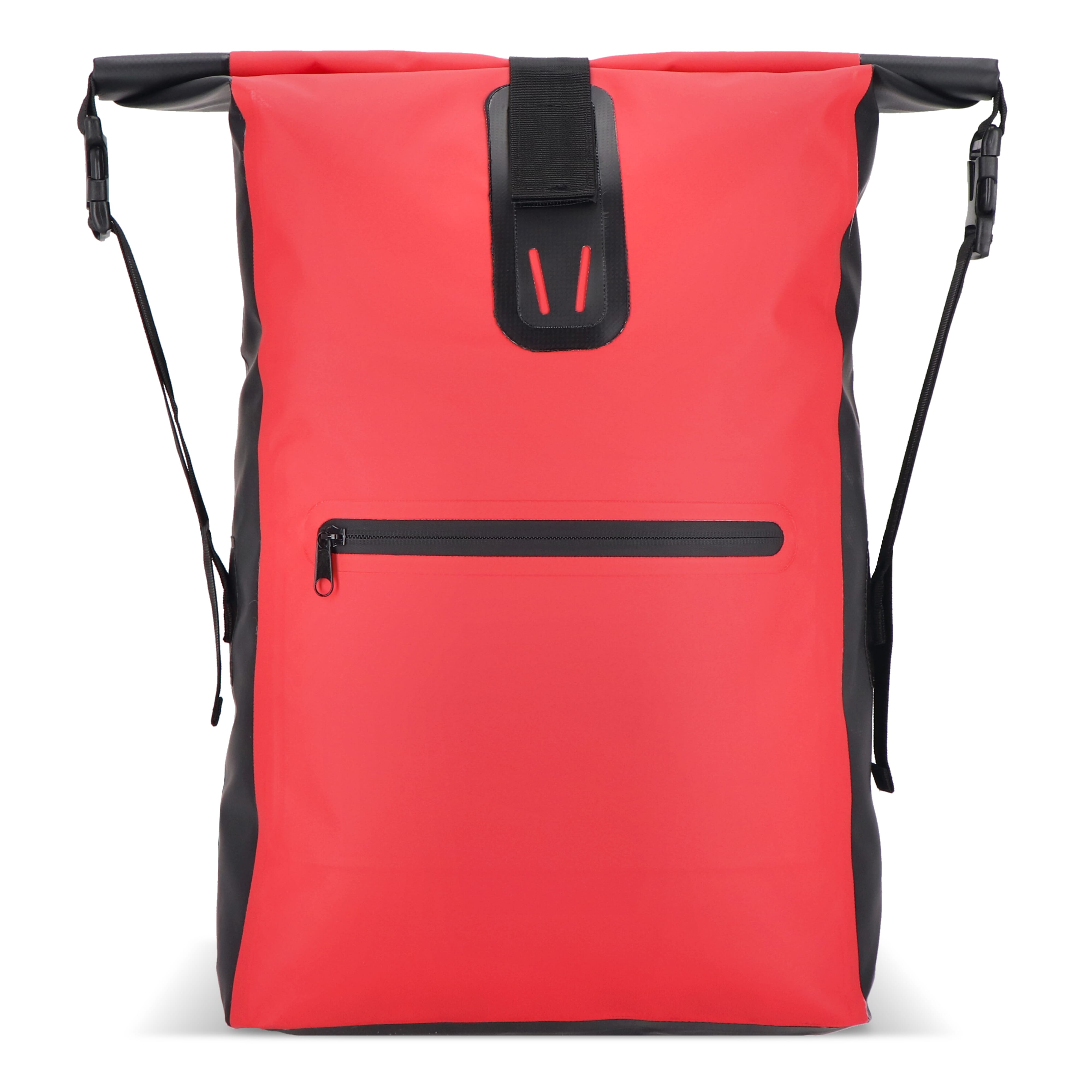 Verstellbarer, wetterfester Rucksack aus robustem Material. Das Rolltop kann auf zwei Arten geschlossen werden, was zusätzliche Flexibilität bietet. Die verschweißten Nähte halten den Inhalt trocken und die Schultergurte sind für den Komfort gepolstert.
