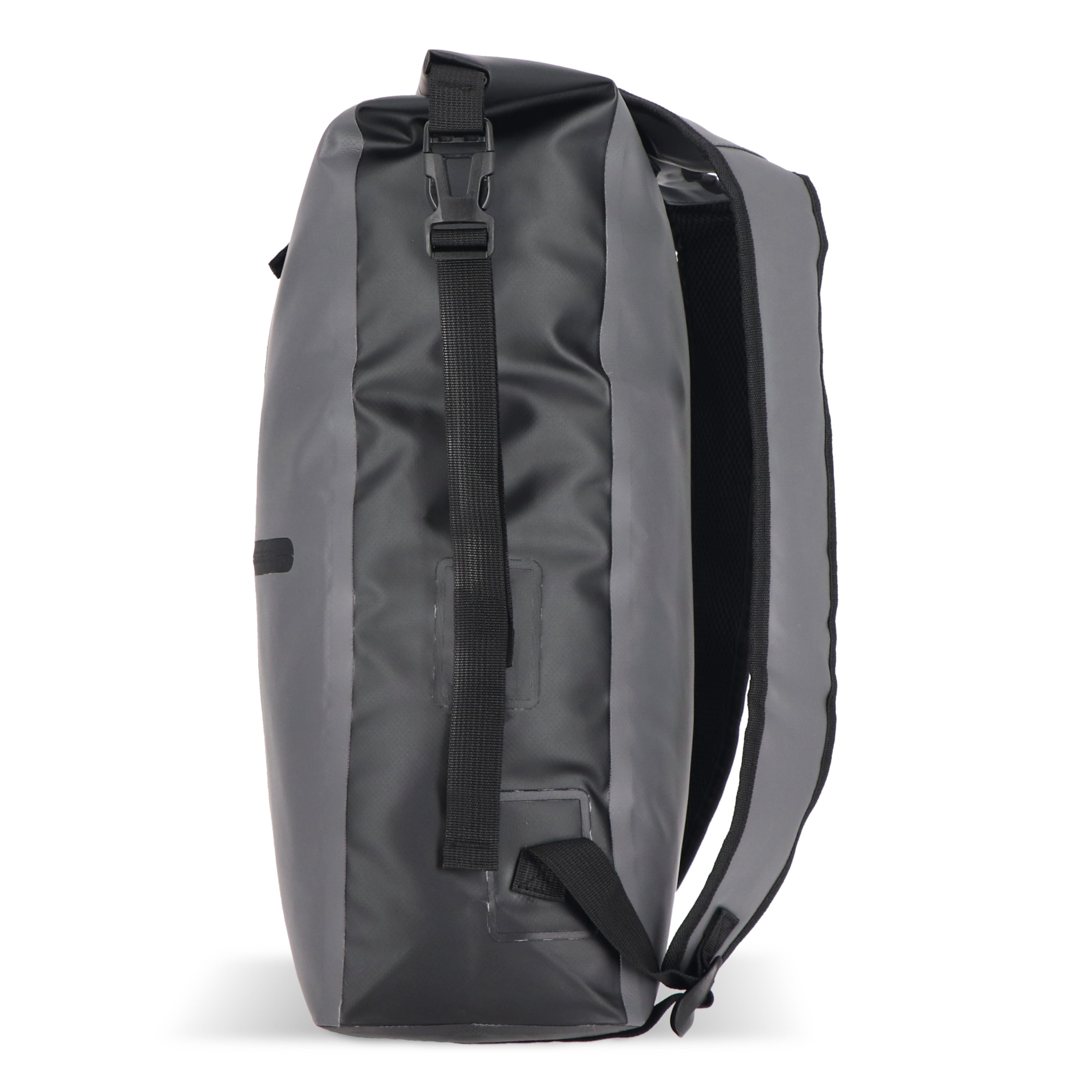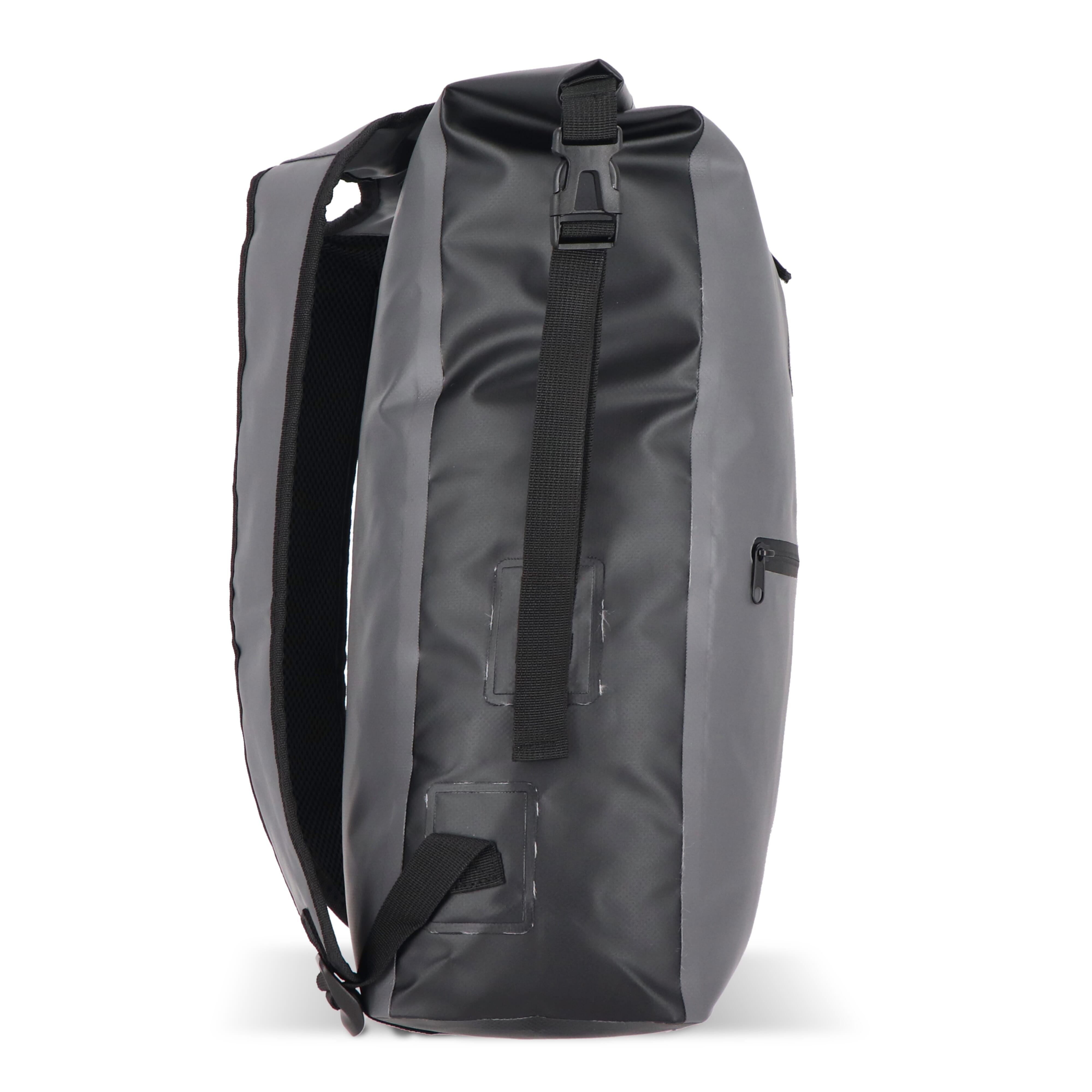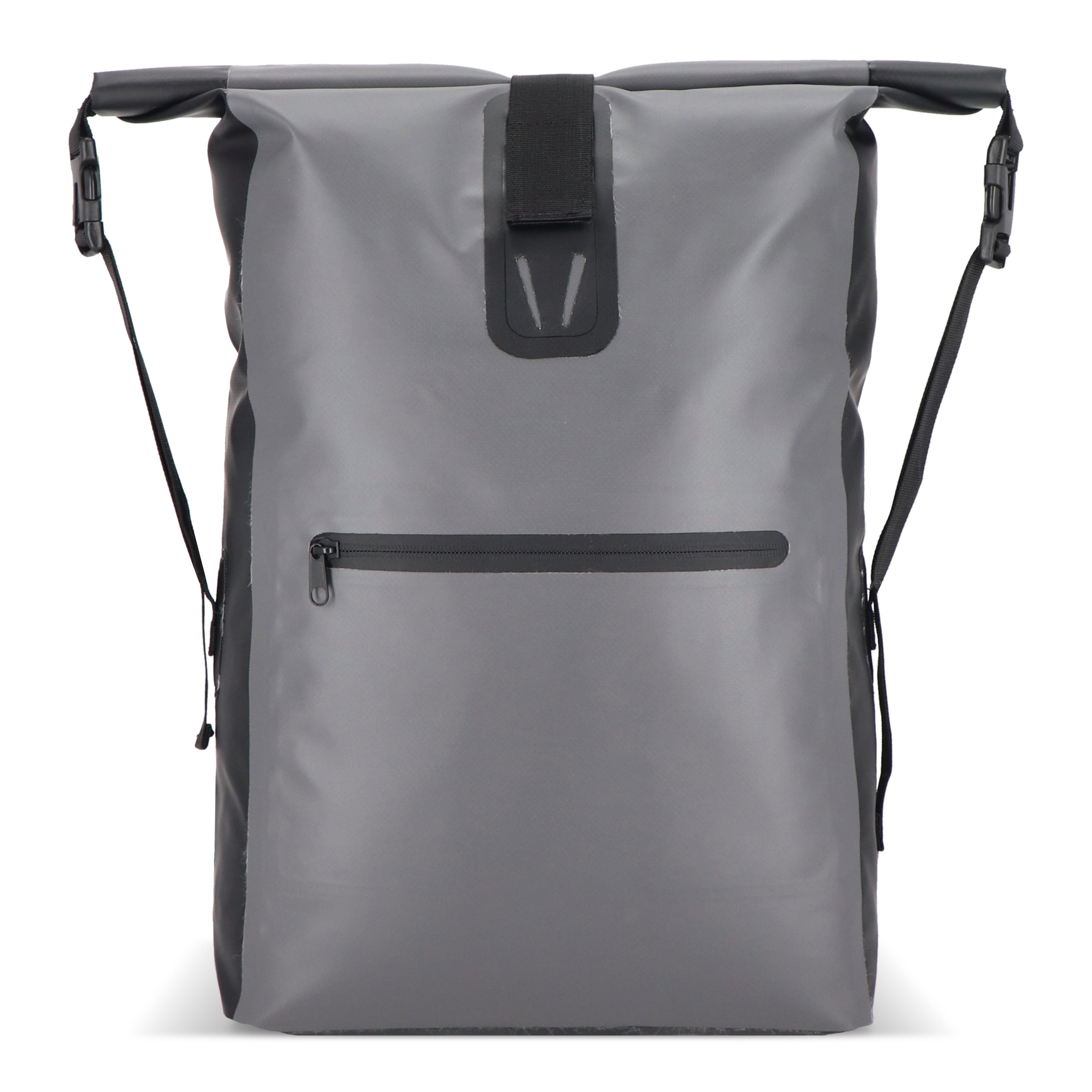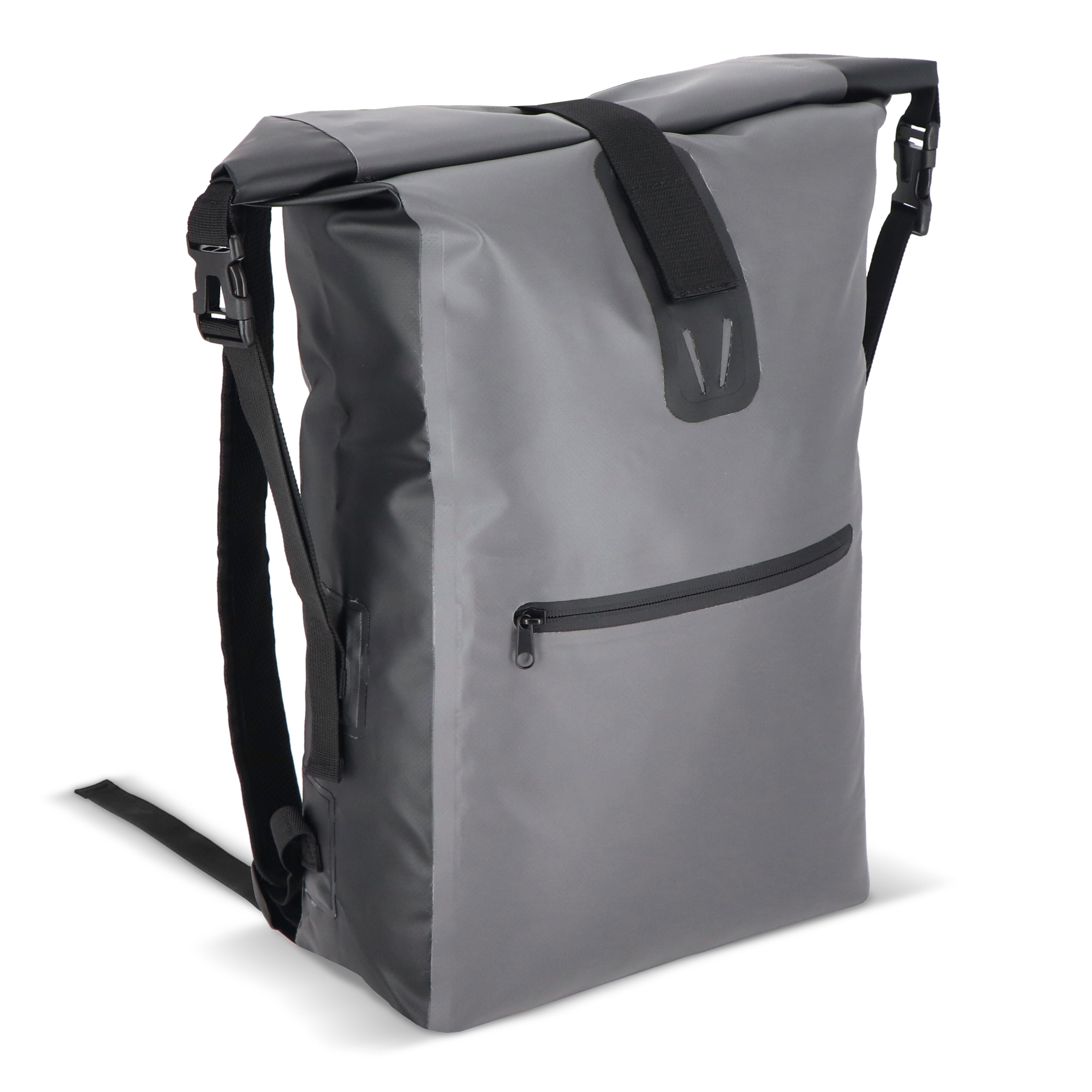 Verstellbarer, wetterfester Rucksack aus robustem Material. Das Rolltop kann auf zwei Arten geschlossen werden, was zusätzliche Flexibilität bietet. Die verschweißten Nähte halten den Inhalt trocken und die Schultergurte sind für den Komfort gepolstert.