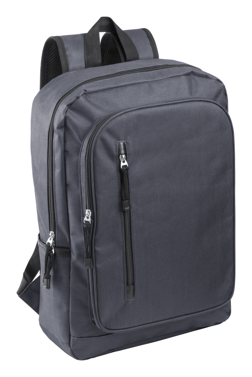 Rucksack mit mehreren Reißverschlussfächern, gepolstertem Laptopfach (15") und einstellbaren Schultergurten. Material: 600D Polyester.