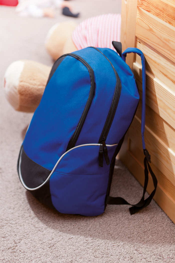 Rucksack CURVE: Reißverschluss-Hauptfach, Reißverschluss-Vorfach, Trageschlaufe, gepolsterte Schultergurte und Rückenbereich