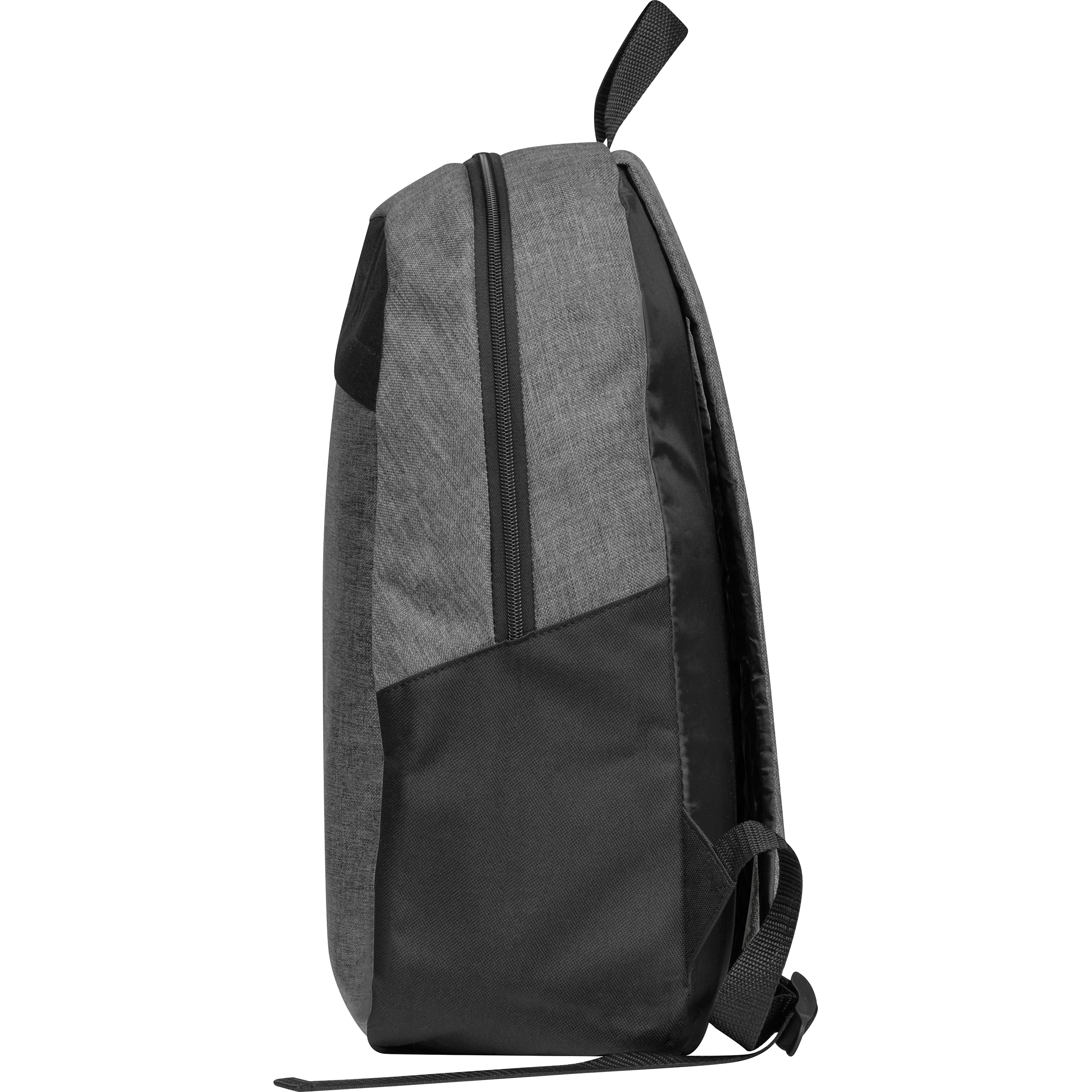 Rucksack aus 600D Polyester mit einem großen Reißverschlussvorfach, einem Innenfach, einer gepolsterten Rückseite sowie gepolsterten verstellbaren Schulterriemen. Ihre Werbung drucken wir auf das Vorfach.