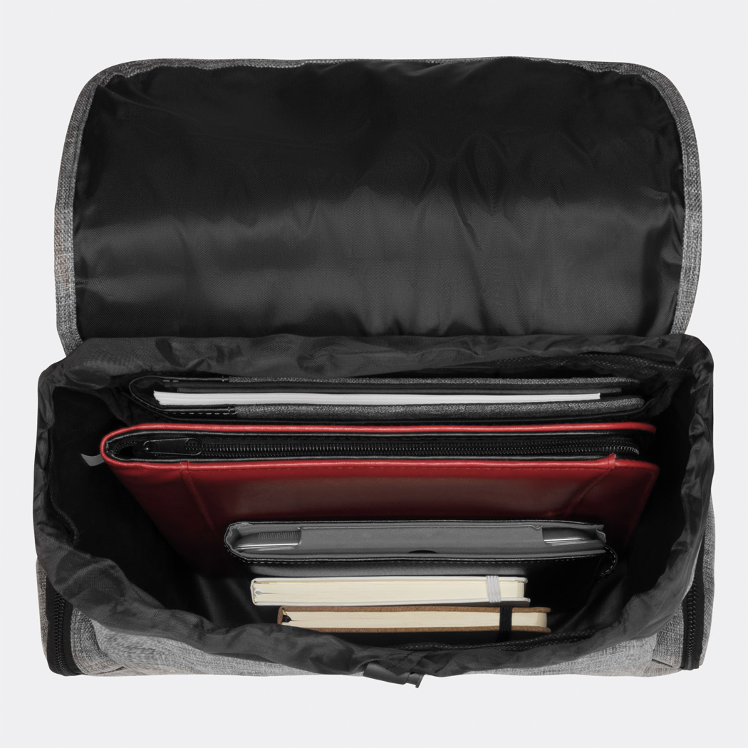 Rucksack DONEGAL S: Hauptfach mit Kordelzug, 2 Schnappverschlüssen und einem gepolsterten Laptopfach innen, 2 seitliche Reißverschlusstaschen, Trageschlaufe, gepolsterte Schultergurte und Rückenbereich