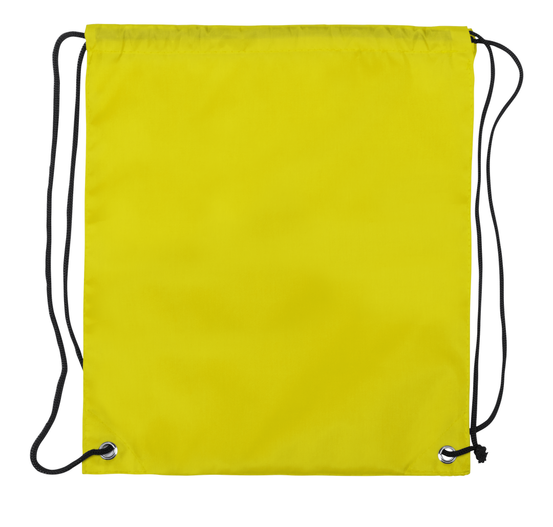 Rucksack mit Kordelzug für Kinder aus weichem 210T Polyester in kräftigen Farben. Mit Zugbändern in Schwarz und Ecken mit Metallösen zur Verstärkung.