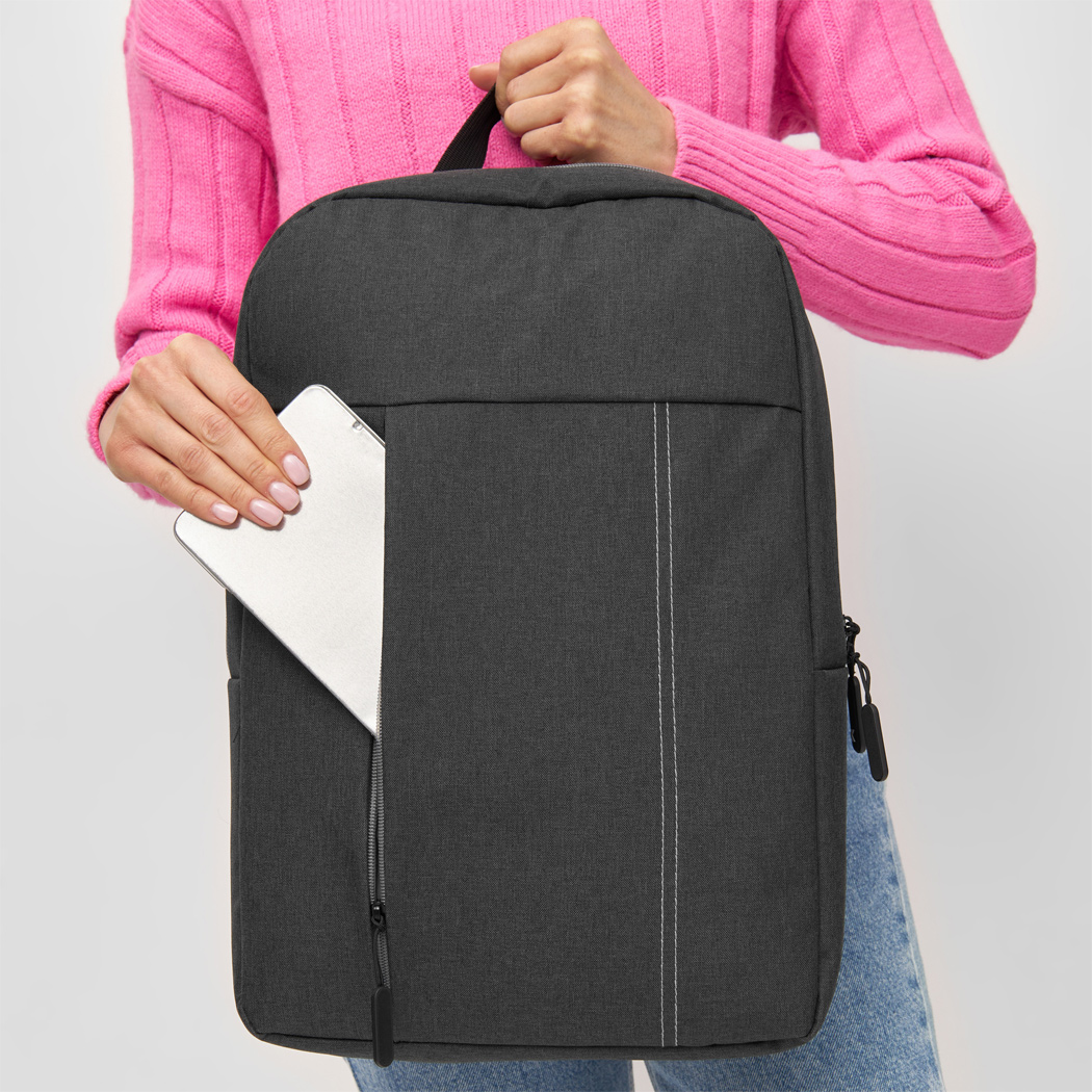 Rucksack FLORENCE: vertikales Reißverschluss-Vorfach, dekorative Stepperei auf der Front, Reißverschluss-Hauptfach mit gepolstertem Innenfach für Laptop oder Tablet, 1 Einsteckfach, Trageschlaufe, gepolsterte Schultergurte in ergonomischer Form und gepolsterter Rückenbereich