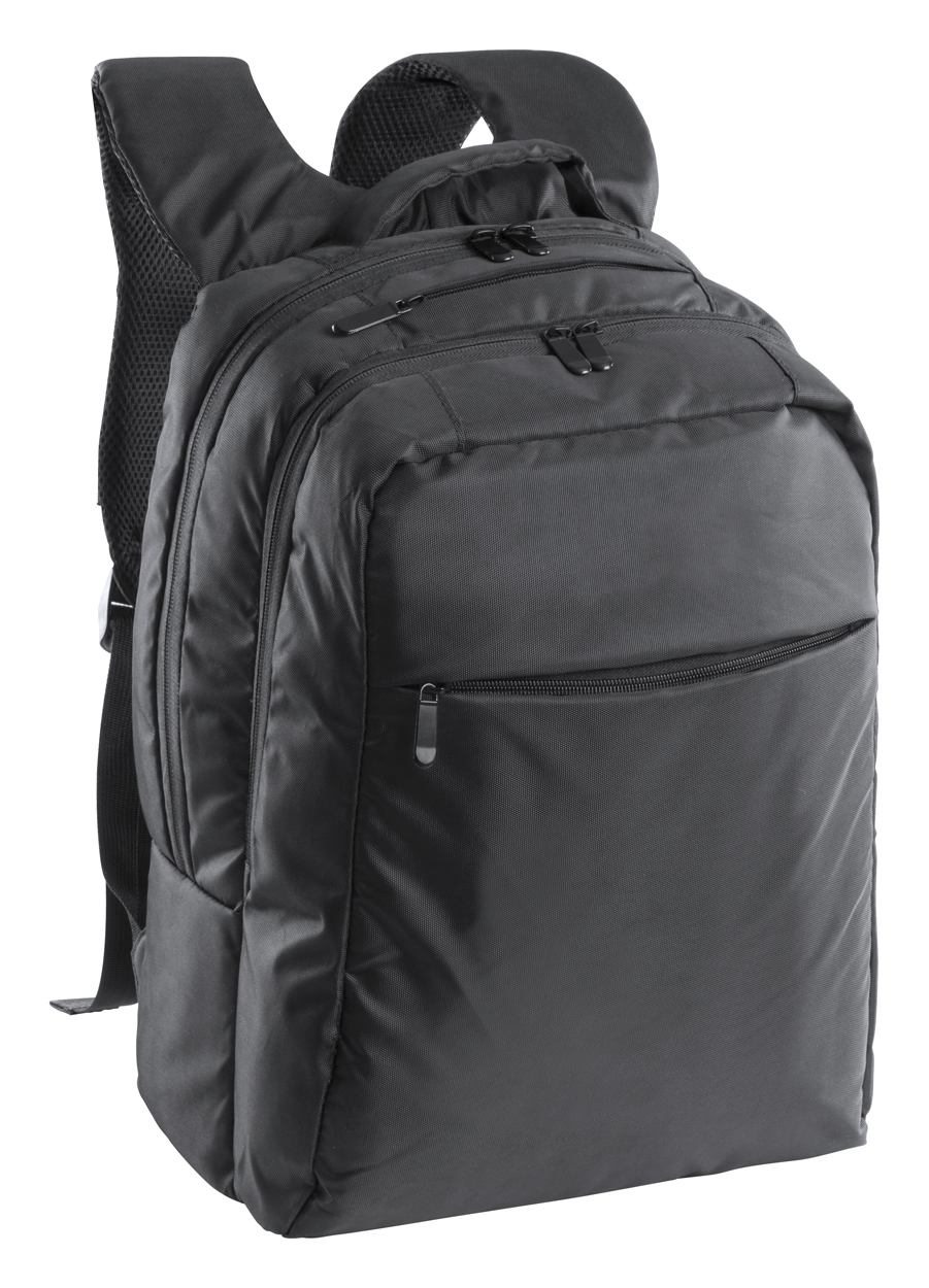 Rucksack mit mehreren Reißverschlusstaschen, gepolstertem Laptopfach (15"), Rückenpartie und Schultergurten. Material: 600D Nylon.