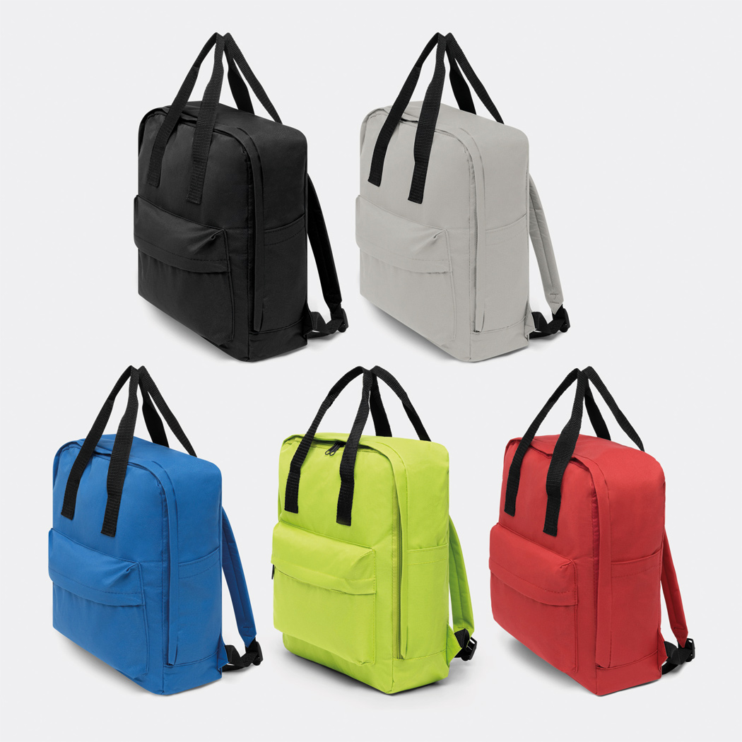 Rucksack HIP: 1 Reißverschluss-Vortasche, 1 Reißverschluss-Hauptfach, verstellbare gepolsterte Schultergurte, 2 Tragegriffe