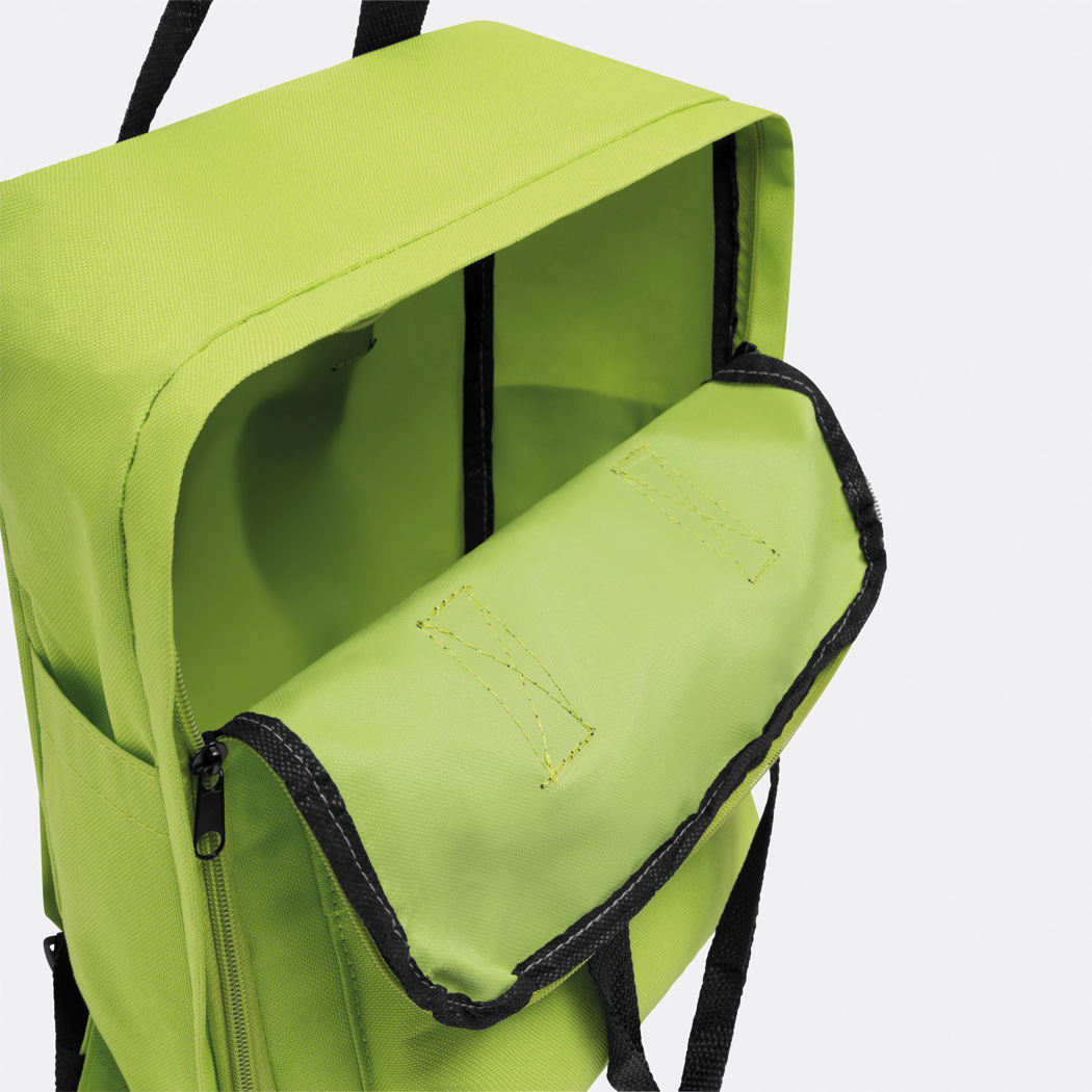 Rucksack HIP: 1 Reißverschluss-Vortasche, 1 Reißverschluss-Hauptfach, verstellbare gepolsterte Schultergurte, 2 Tragegriffe