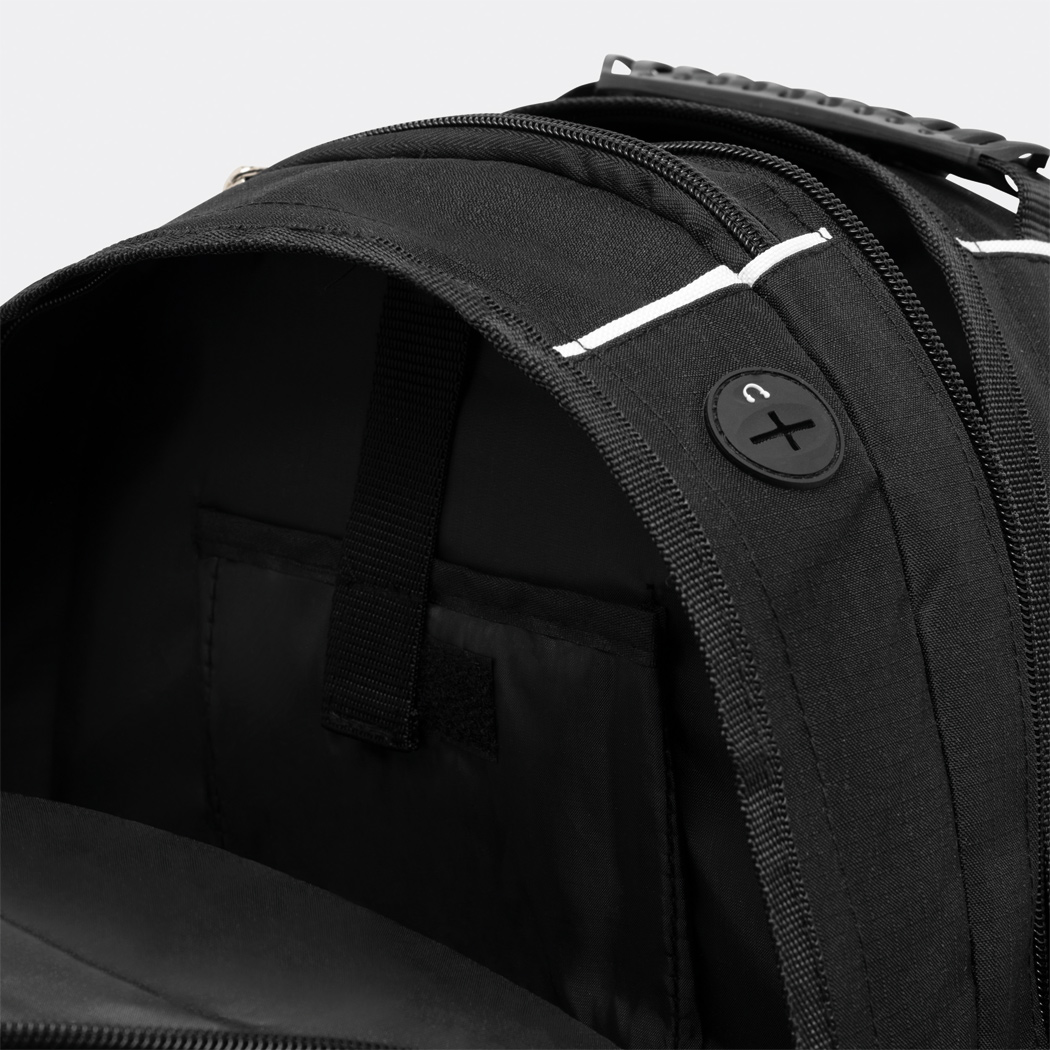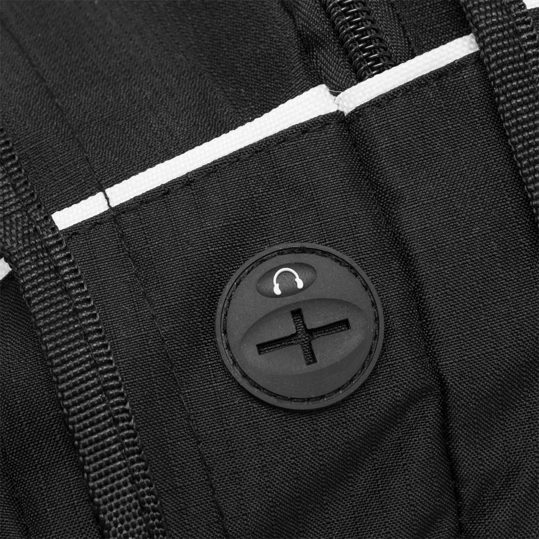 Rucksack HYPE: 2 Reißverschluss-Vorfächer – eins davon mit kleinem Organizerfach, 2 Reißverschluss-Hauptfächer; eines mit gepolstertem Notebookfach, das andere Reißverschluss-Hauptfach mit Kabelausgang und extra gepolstertem Fach für z. B. Smartphone oder andere Geräte, 1 Reißverschluss-Schlüsselfach, 2 seitliche Netzeinsteckfächer und Kompressionsgurte, verstärkter Tragegriff, gepolsterte Schultergurte und Rückenbereich