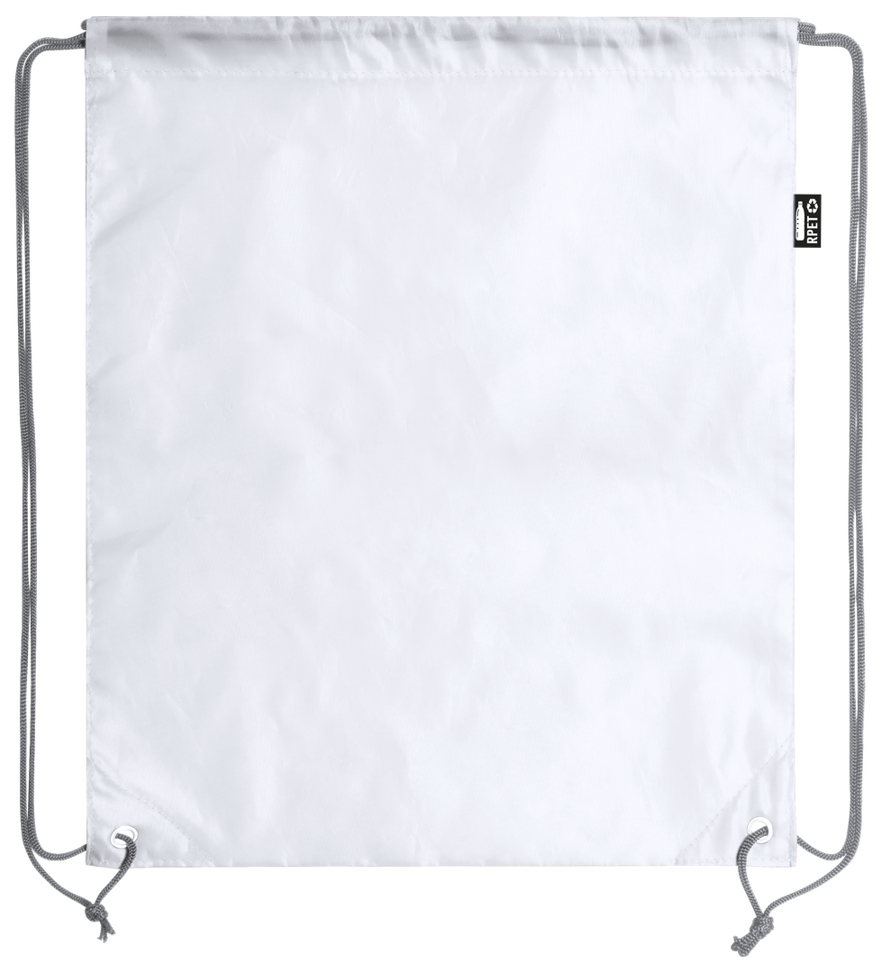 Rucksack mit Kordelzug aus weichem RPET-Polyester. Mit selbstschließenden Kordeln, verstärkten Ecken und starken Metallringen. RPET-Plakette auf dem Seitenetikett und in einer Reihe von Farben erhältlich (weiß speziell für Sublimationsdruck).Hergestellt aus recyceltem Kunststoff, um die Wiederverwendung von Kunststoffabfällen zu fördern und die Nachhaltigkeit unseres Planeten zu unterstützen.