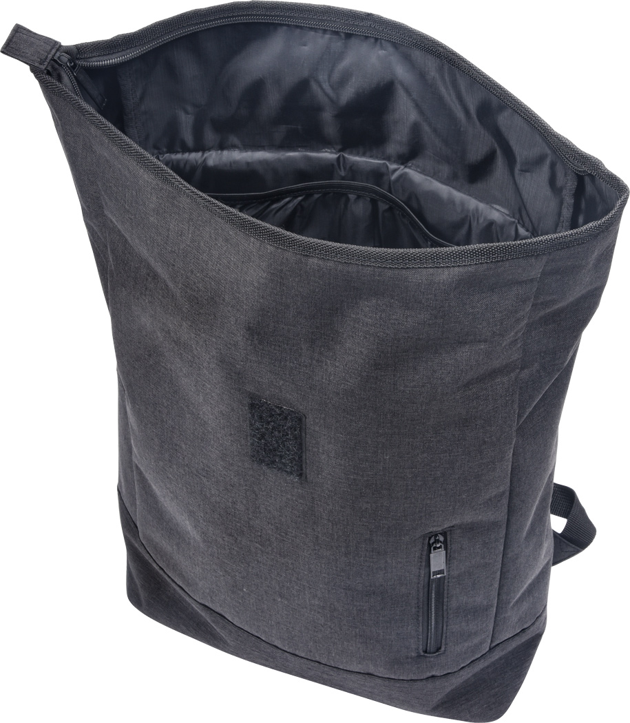 Rucksack MESSENGER: vertikales Reißverschluss-Vorfach, Reißverschluss-Hauptfach mit gepolstertem Innenfach für Laptop oder Tablet, aufrollbar und mit Klettverschluss verschließbar, gepolsterte Schultergurte und Rückenbereich, Trageschlaufe