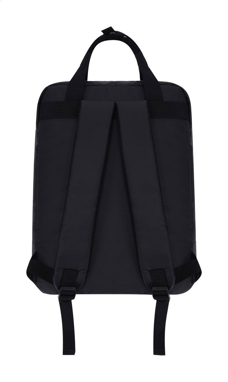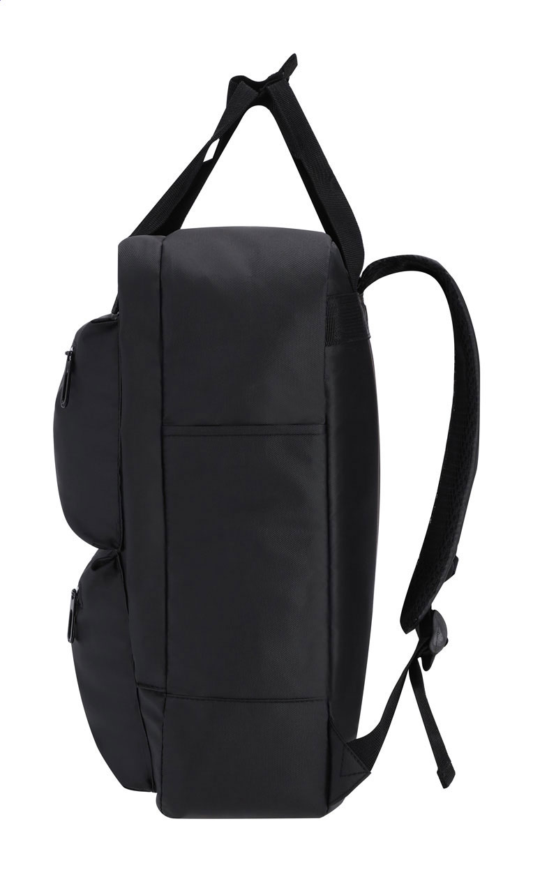 Weicher PU-Leder-Rucksack mit Reißverschlussfach und Fronttaschen, gepolstertem Laptop- (15") und Tablet-Fach (10"), gepolstertem Rücken und Schultergurten.