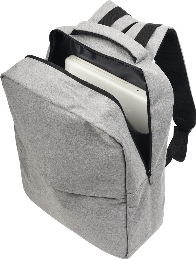 Rucksack PRAGUE: Reißverschluss-Vorfach, Reißverschluss-Hauptfach mit gepolstertem Innenfach für Laptop oder Tablet, Organizer mit 4 Steckfächern, 1 seitliches Einsteckfach, gepolsterter Tragegriff, gepolsterte Schultergurte und Rückenbereich