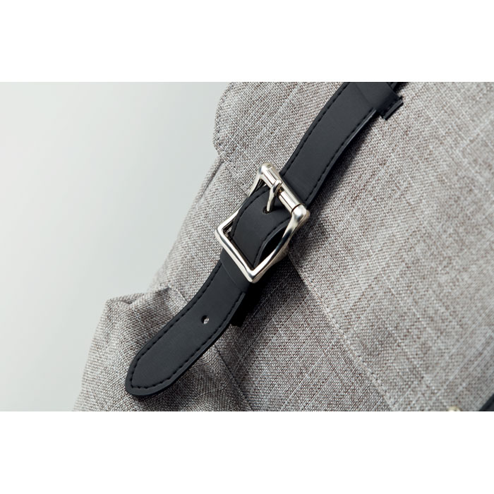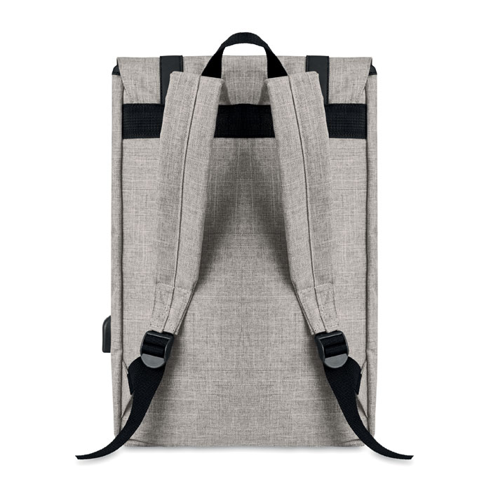 Rucksack mit 15'' Laptop-Fach und USB-Ladekabel. Magnetischer Schnappverschluss und Frontfach mit Reißverschluss. Gepolsterte Schultergurte. Zweifarbiger 600D Polyester.