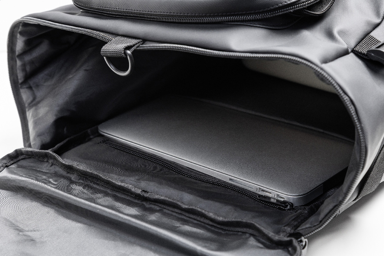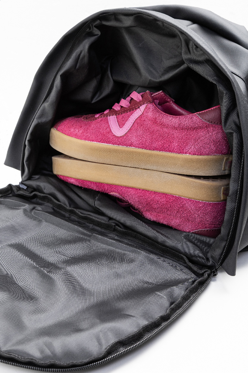 Wasserdichter RPET-Rucksack mit Reißverschluss-Hauptfach, 2 Reißverschluss-Fronttaschen, Seitentaschen und Reißverschluss-Schuhfach. Mit gepolstertem Laptopfach (15"), gepolstertem Rücken und gepolsterten Schultergurten. Mit längenverstellbaren Seitengurten. Material: PU-beschichtetes 600D RPET-Polyester. Mit RPET-Label.