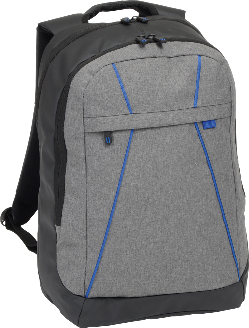 Rucksack SPLIT: 1 Reißverschluss-Vorfach, 2 Reißverschluss-Hauptfächer, ein Hauptfach mit gepolstertem Laptopfach und 1 Einsteckfach, das andere Hauptfach mit kleinem Organizer, Tragegriff, gepolsterte Schultergurte und Rückenbereich