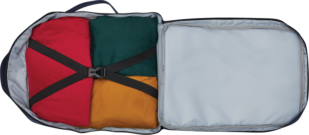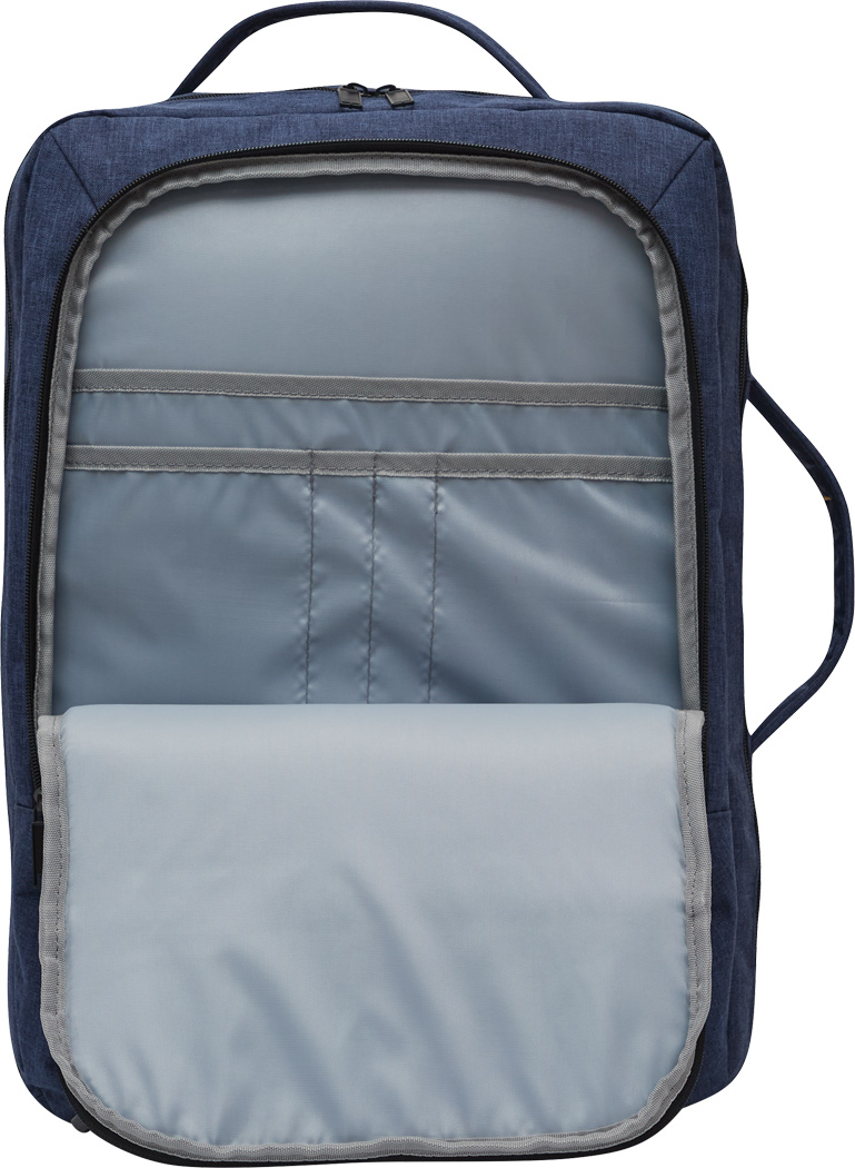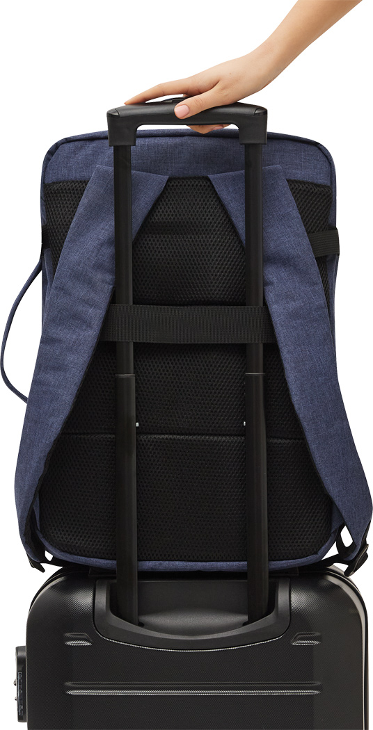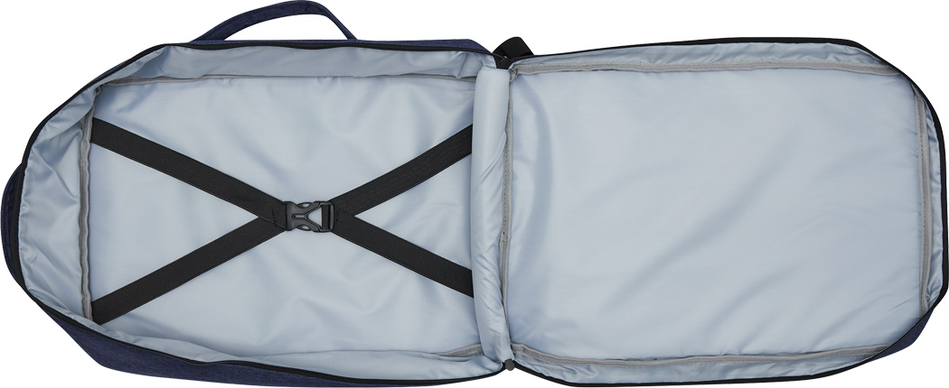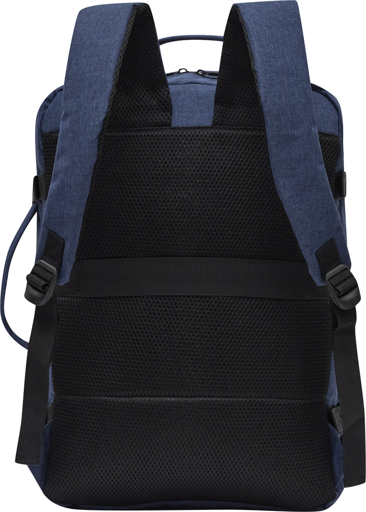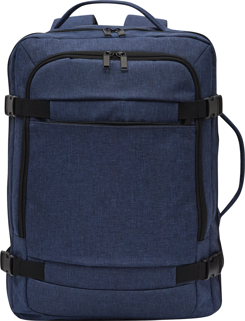 Rucksack STEWARD: 2 Reißverschluss-Vorfächer, eins davon mit Organizer (3 Steckfächer, 2 Stifteschlaufen), 1 großes gepolstertes Reißverschluss-Hauptfach mit Packgurt, 1 gepolstertes Reißverschluss-Laptopfach, jeweils 1 verstärkter Top- und Seitengriff, gepolsterte Schultergurte in ergonomischer Form und gepolsterter Rückenbereich, Gurt als Reporterfunktion auf der Rückseite, seitlich je 2 Kompressionsgurte mit Schnappverschluss