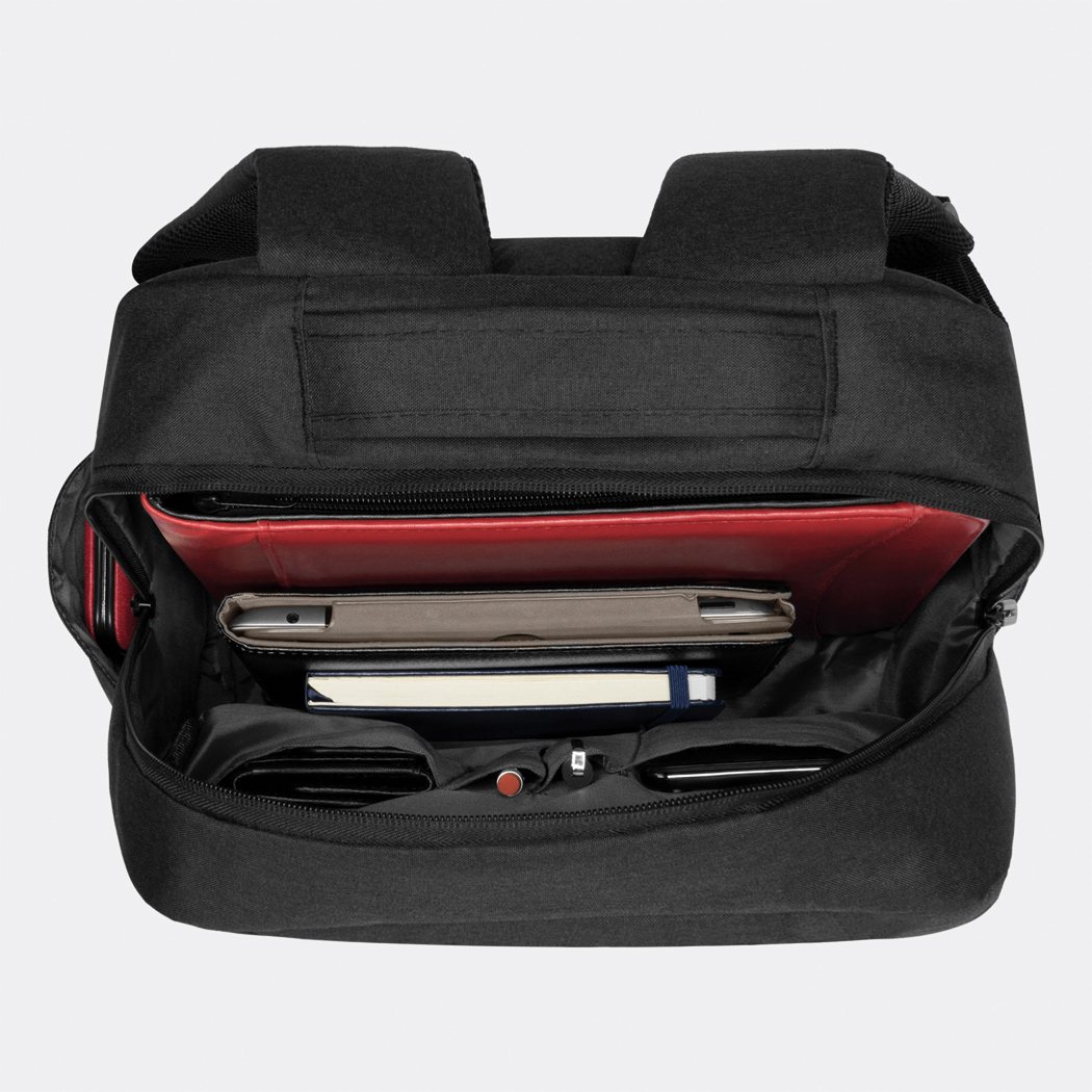 Rucksack STOCKHOLM: 2 Reißverschluss-Vorfächer, Reißverschluss-Hauptfach mit gepolstertem Innenfach für Laptop oder Tablet, Organizer mit 4 Steckfächern, 1 seitliches Einsteckfach, gepolsterter Tragegriff, gepolsterte Schultergurte in ergonomischer Form und gepolsterter Rückenbereich, Gurt als Reporterfunktion auf der Rückseite