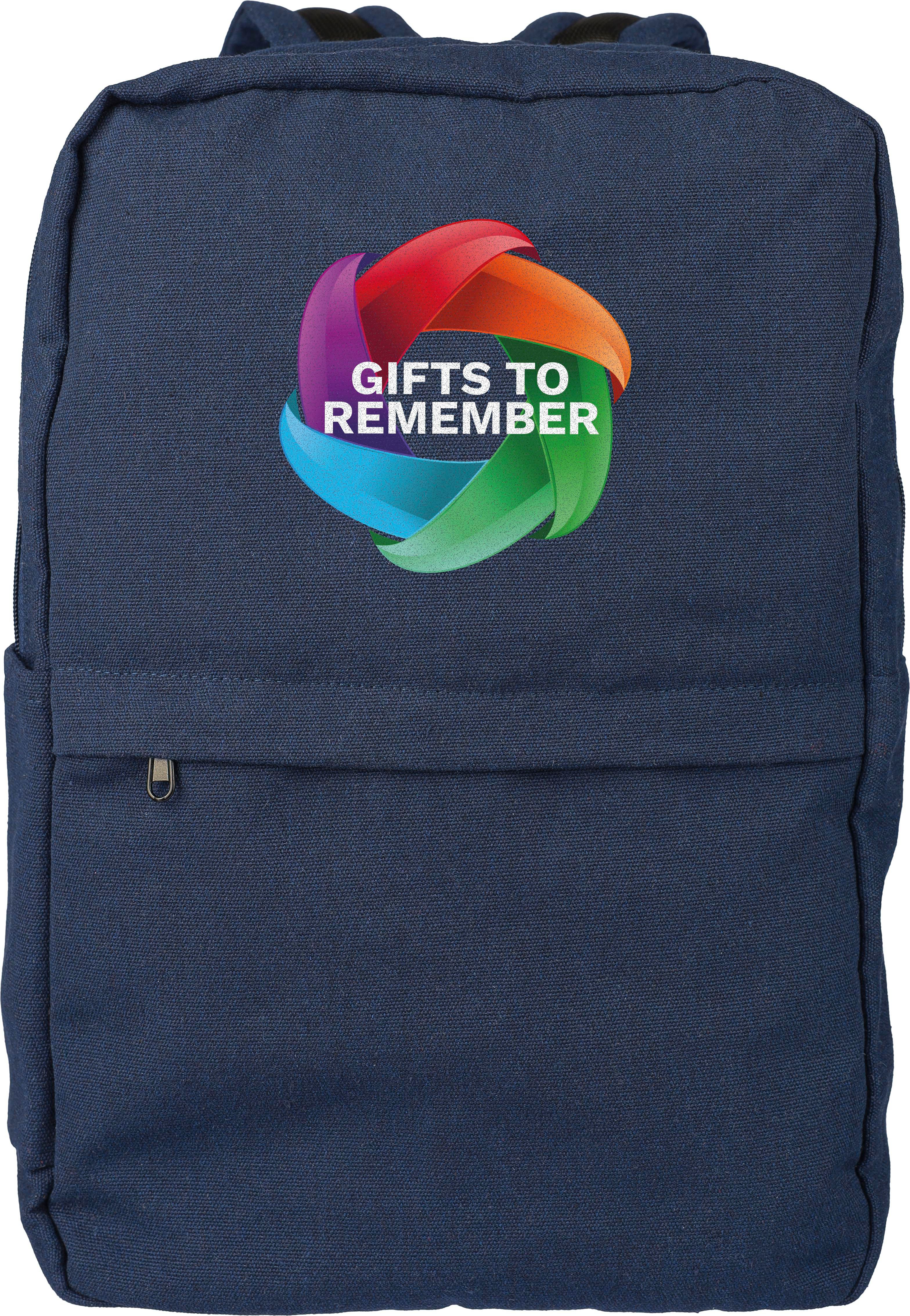 Rucksack aus recyceltem Poly-Baumwollgewebe (330 g / m2) mit 210D-Polyesterfutter. Er verfügt über ein großes Reißverschlussfach und ein gepolstertes 15”-Laptopfach, zwei Innenfächer und zwei Außentaschen, darunter eine Seitentasche und eine kleine Fronttasche mit Reißverschluss. Mit gepolstertem, verstellbarem Schultergurt und Tragegriff. Fassungsvermögen: 14 Liter. Tragkraft: 13 kg. Mit Etikett.