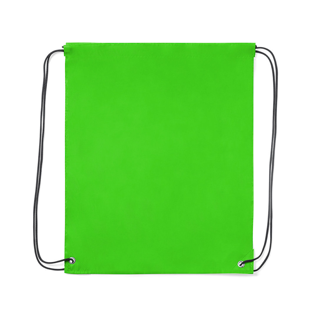 Rucksack mit Kordelzug aus weichem Polyester in einer breiten Farbpalette. Mit schwarzen, selbstsichernden Schnüren, verstärkten Kunstlederecken in passender Farbe und starken Metallringen. Farbe weiß ist speziell für Sublimationsdruck geeignet.