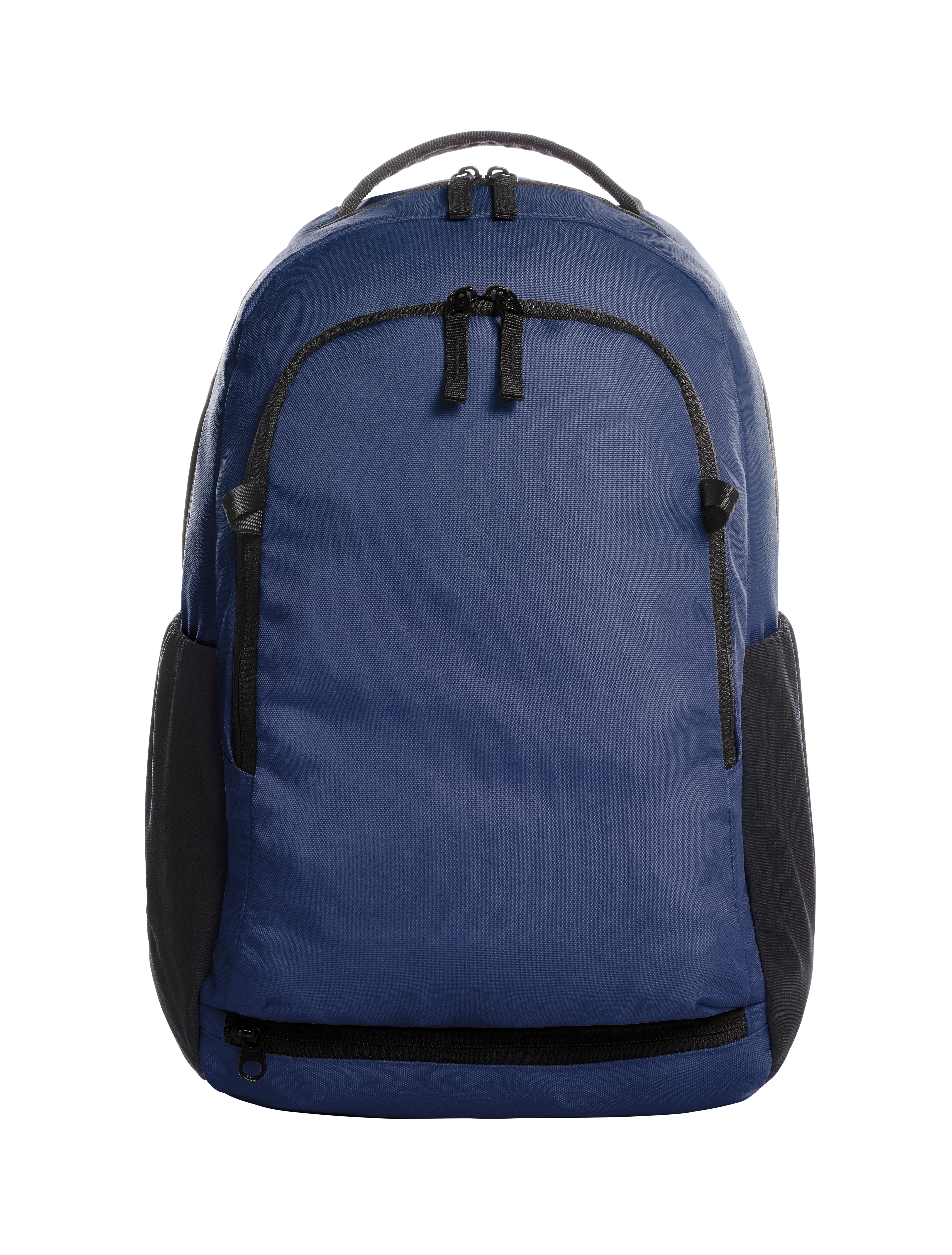 Klassisches Multitalent für die Freizeit; großes Hauptfach mit 2-Wege-Reißverschluss; flaches Einsteckfach; Volumenerweiterung; 2-Wege-Reißverschluss-Vortasche; Bodenfach mit versenkbarem Netz; elastische Netzseitentaschen; zwei Handgriffe; Tragelasche; verstellbarer Brustgurt; gepolstertes, längenverstellbares Tragesystem