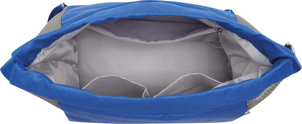 Rucksack TRIP: mit Gurtzug zum Verschließen und als Schultergurte (verstellbar), 1 großes Hauptfach mit 1 Reißverschluss-Innenfach und 2 Einsteckfächer, 2 vertikale Reißverschluss-Vortaschen, 1 Reißverschlussfach am Boden