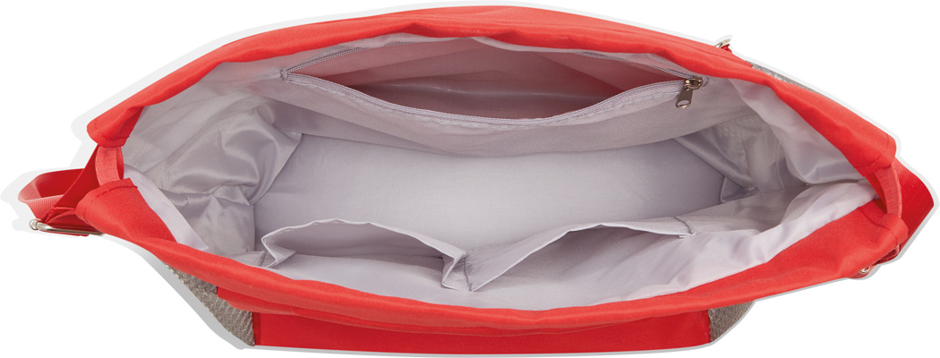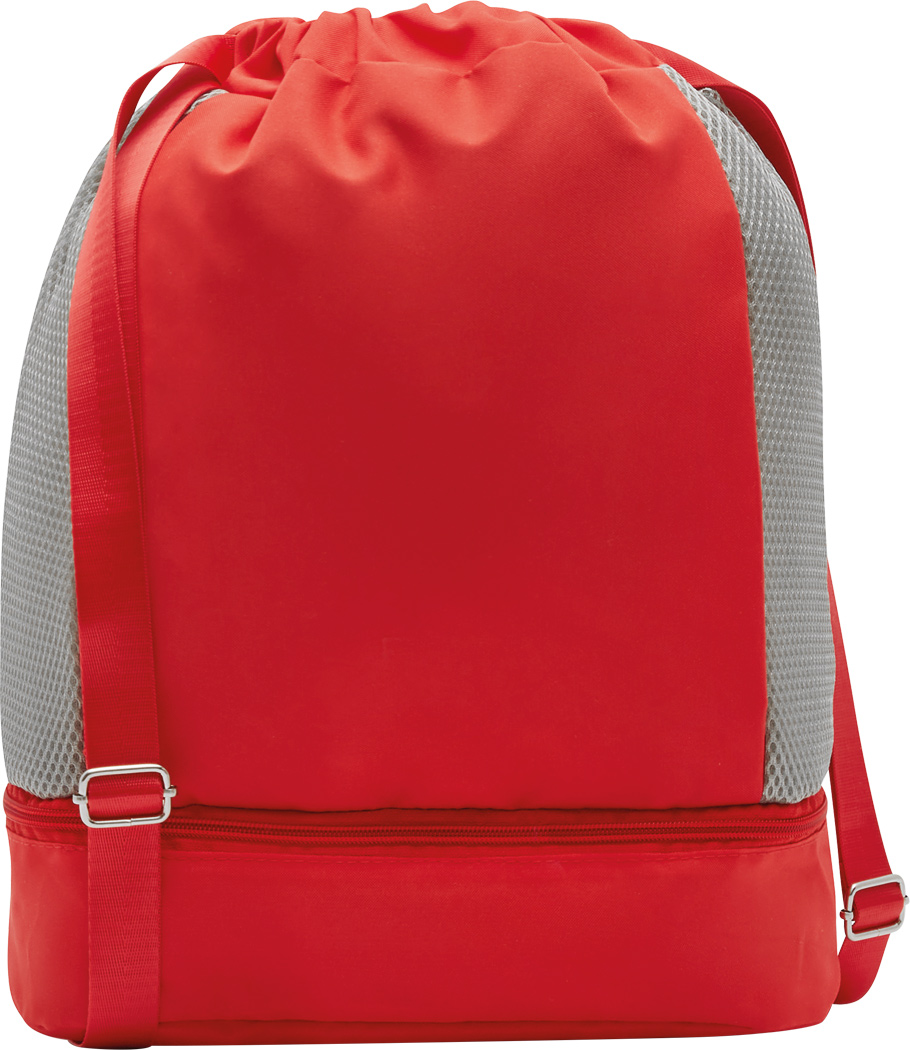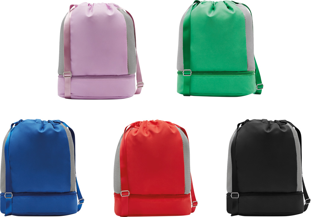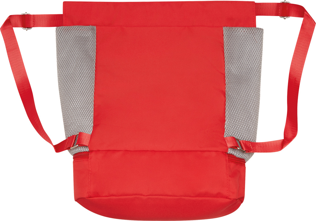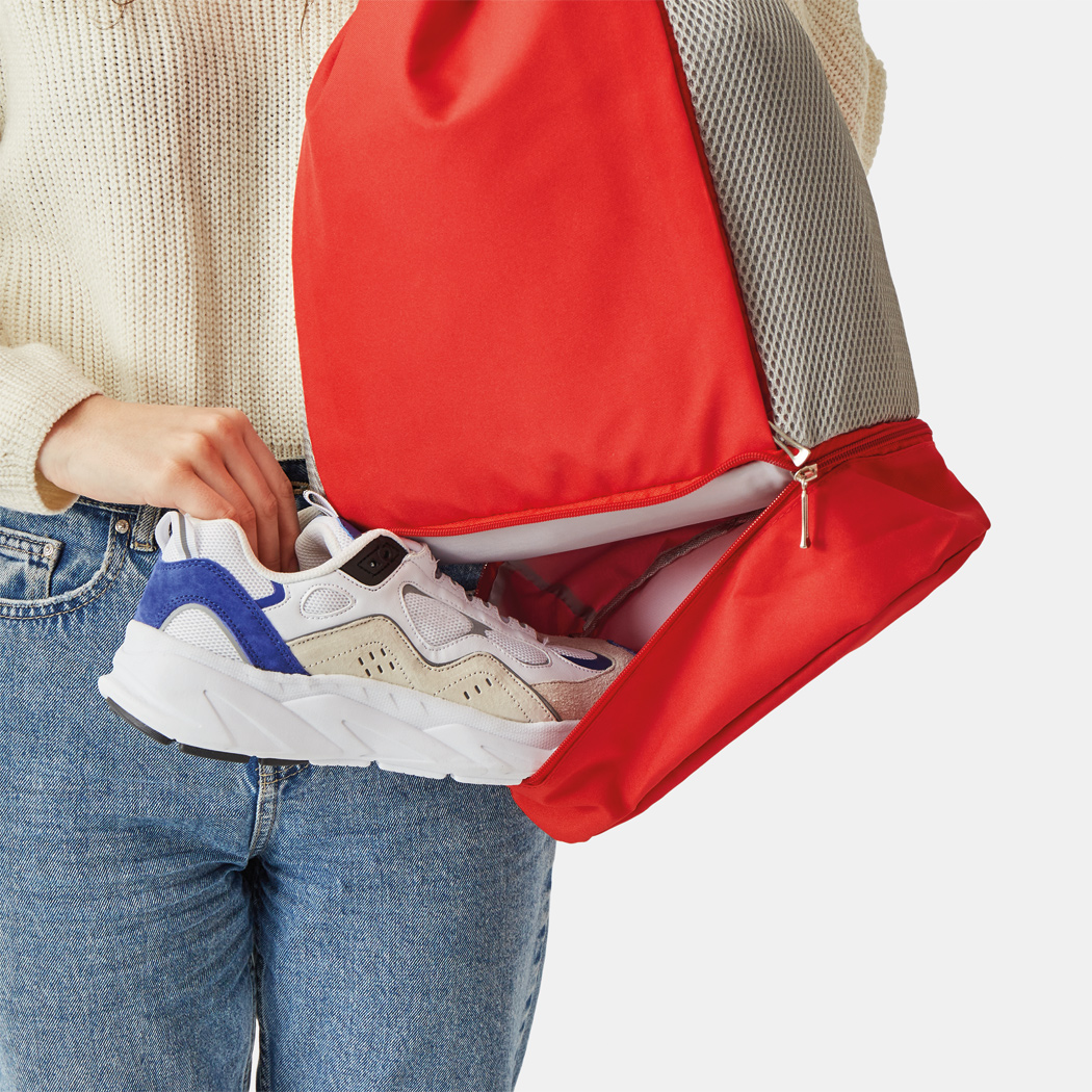 Rucksack TRIP: mit Gurtzug zum Verschließen und als Schultergurte (verstellbar), 1 großes Hauptfach mit 1 Reißverschluss-Innenfach und 2 Einsteckfächer, 2 vertikale Reißverschluss-Vortaschen, 1 Reißverschlussfach am Boden