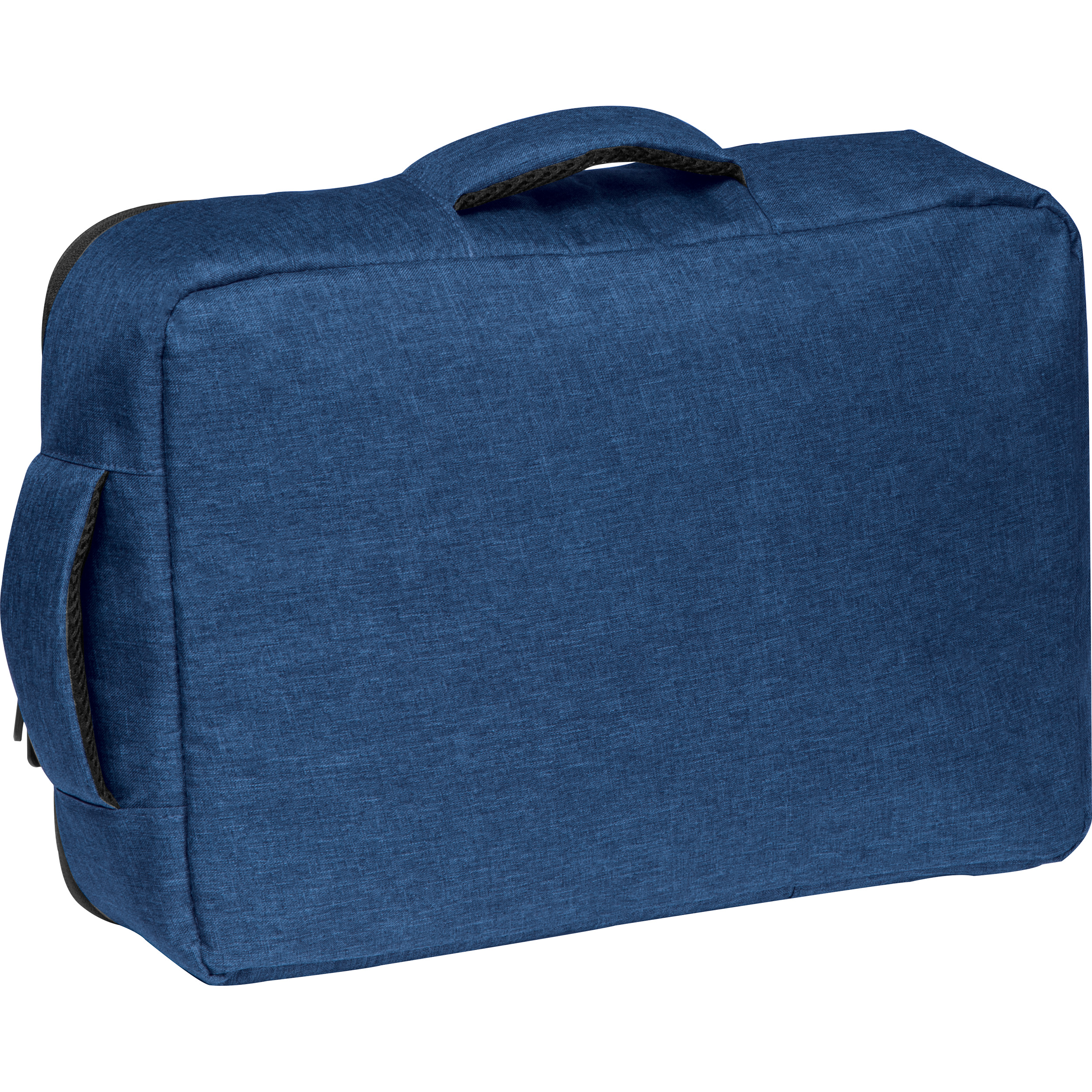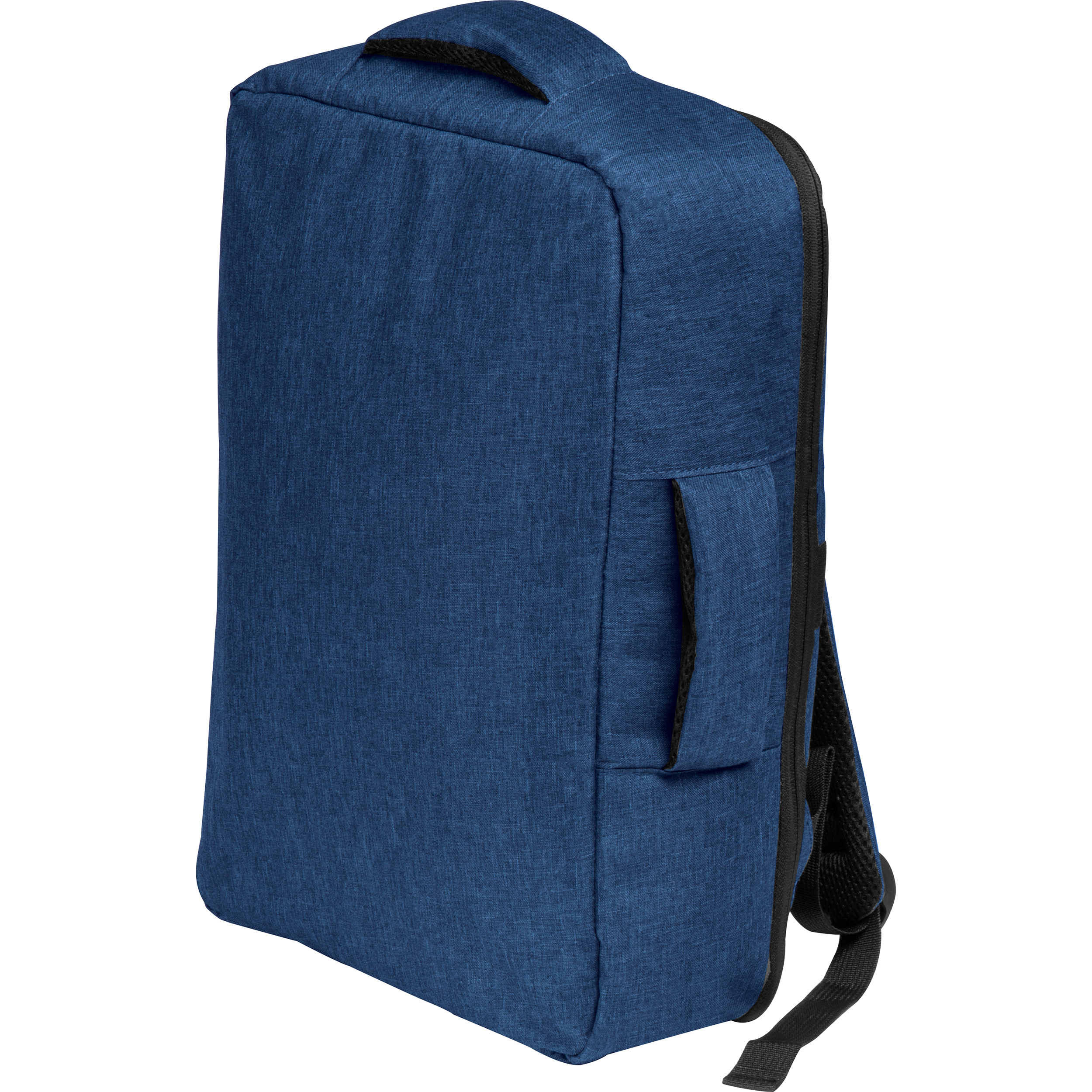 Laptop-Rucksack aus 300D Polyester mit Trolley-Funktion. Neben dem große Hauptfach und dem Laptopfach verfügt er noch über eine fast ganz umlaufenden Reißverschluss, vier Einsteckfächer innen, zwei gepolsterte Tragegriffe sowie gepolsterte und verstellbare Schulterriemen. Ihre Werbung drucken wir mittig vorne auf den Rucksack.