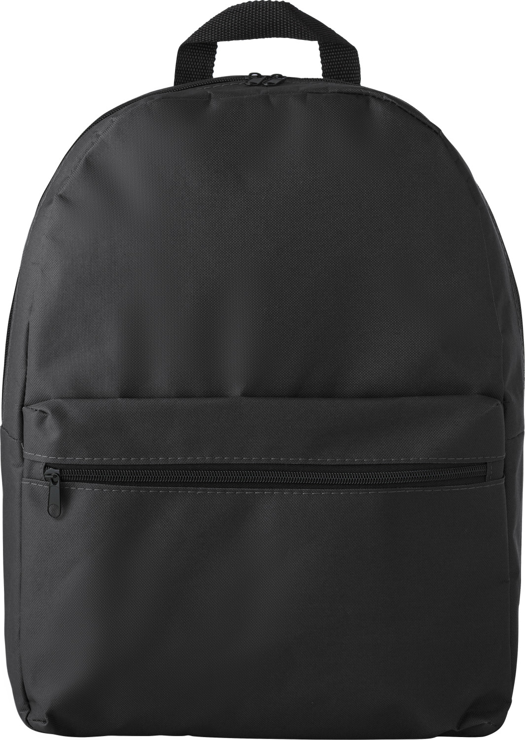 Rucksack aus Polyester (600D) mit Reißverschluss am Hauptfach und Vordertasche. Die Tasche hat verstellbare, gepolsterte Schultergurte.