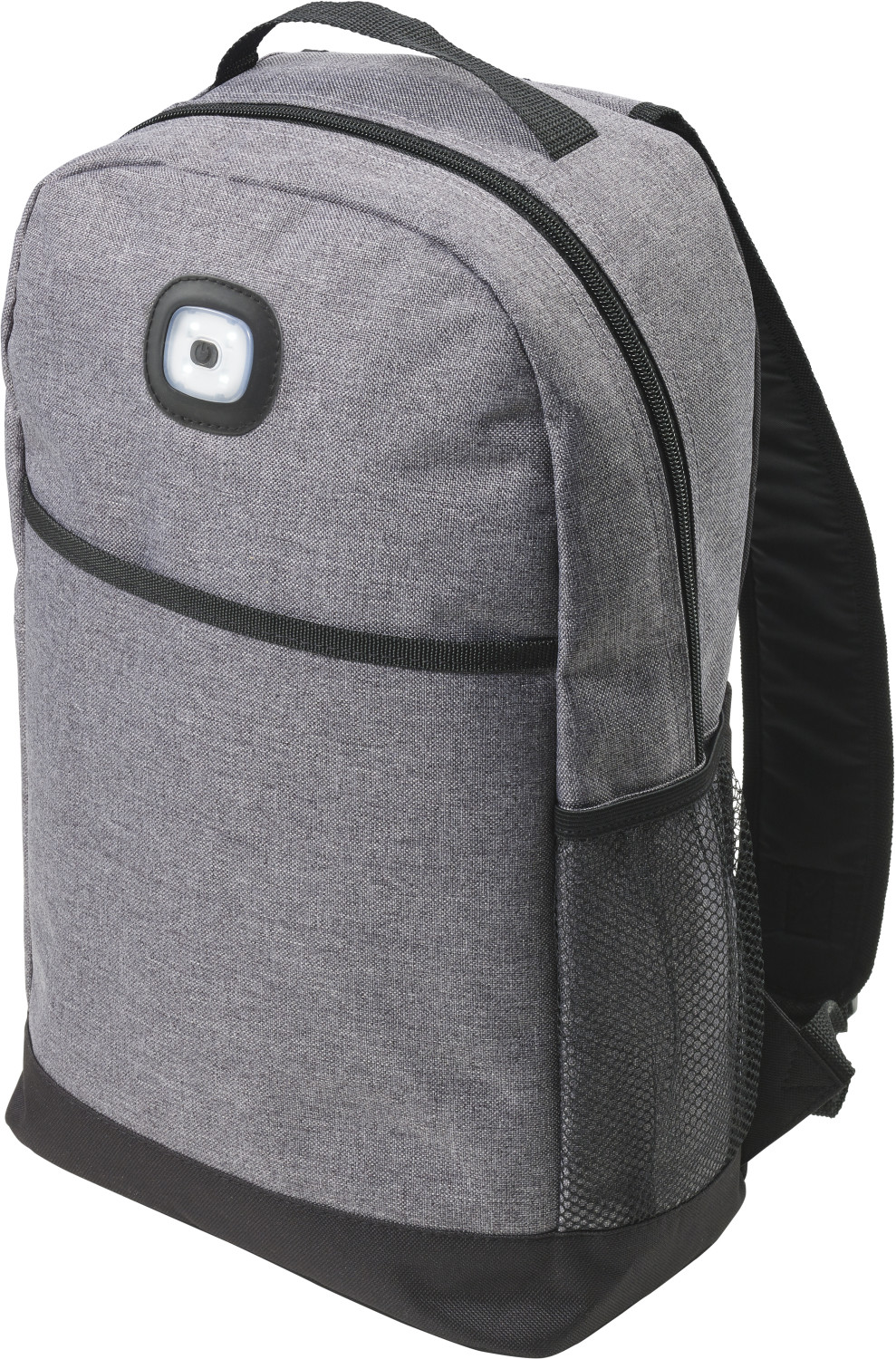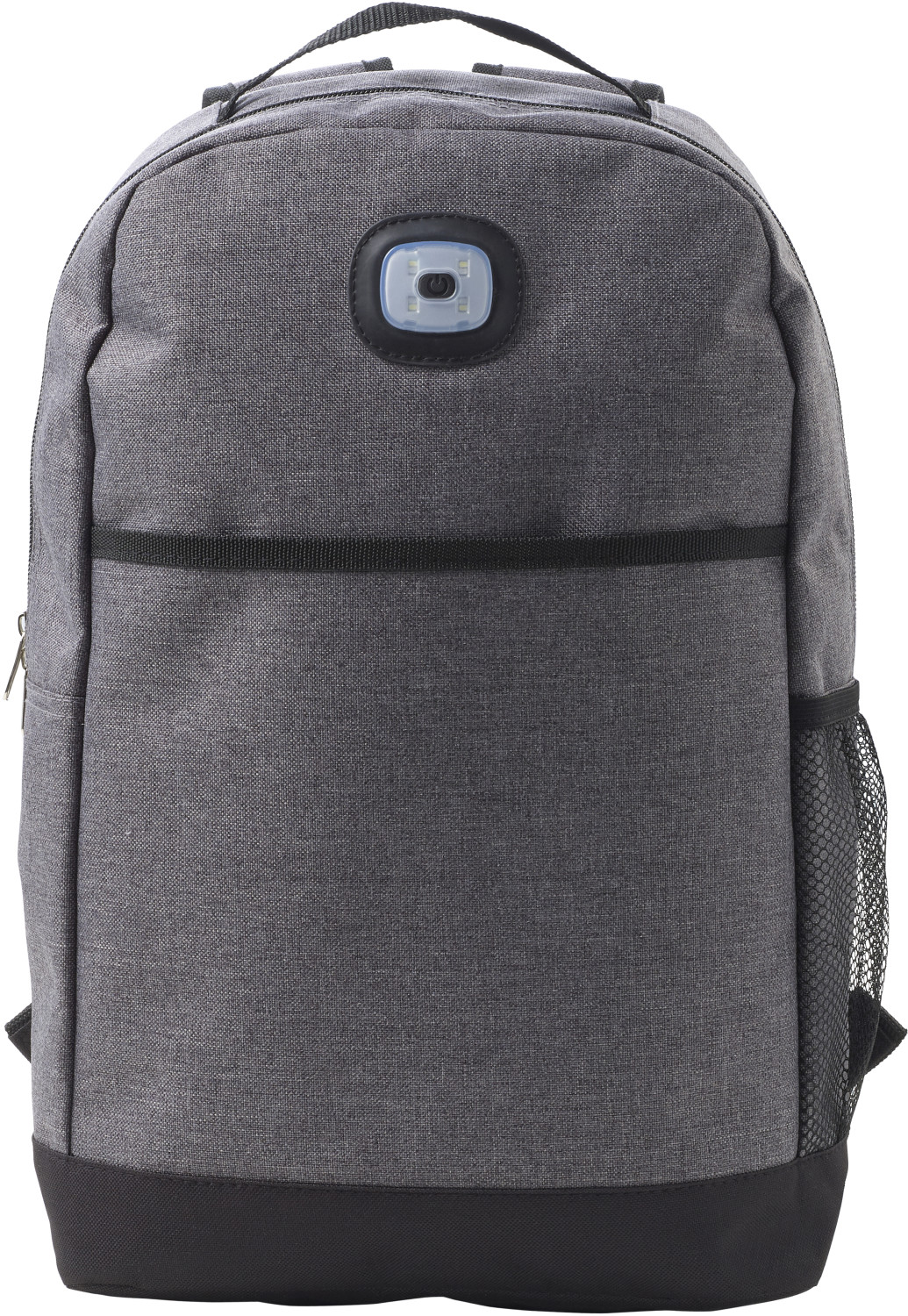 Rucksack 'Dover' aus Polyester (300D + 210D) mit verstellbaren und gepolsterten Schultergurten, gepolstertem Rückenteil, großem RV-Hauptfach, RV-Fronttasche, Netzfach und batteriebetriebener COB-Leuchte mit zwei Leuchtfarben (weiß und rot).