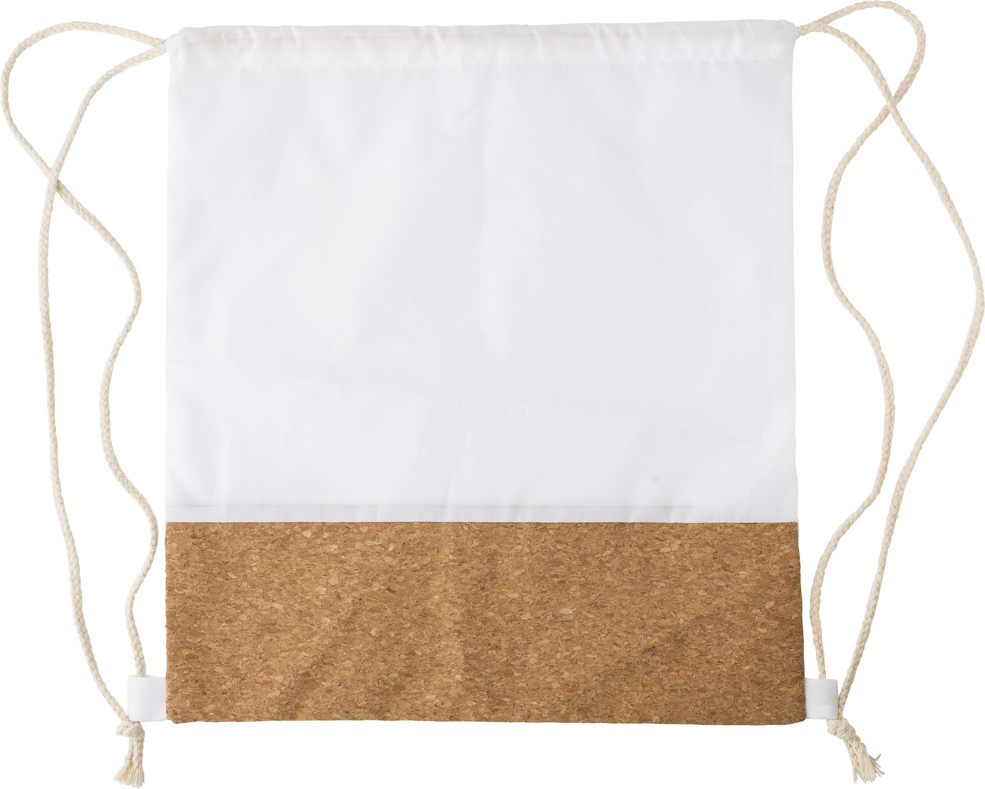 Rucksack aus rPET und Kordelzug aus Kork und Kordelzug aus Baumwolle.