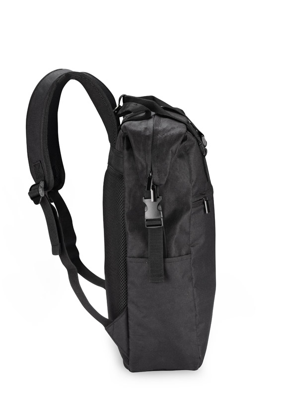 Der DEMOKO Rucksack ist ein originelles und originelles Produkt. Es verfügt über einen breiten Reißverschluss und bequeme Griffe. An der Außenseite gibt es eine Reißverschlusstasche und zwei kleine Seitentaschen, perfekt für eine Wasserflasche. An der Taille befindet sich ein Riemen, der mit einer Schnalle befestigt wird, was die Anpassung des Rucksacks erleichtert und den Tragekomfort erhöht. Die Rückseite ist zusätzlich profiliert. In den Rucksack passt ein 17-Zoll-Laptop. Es besteht aus 600D rPET-Polyester.