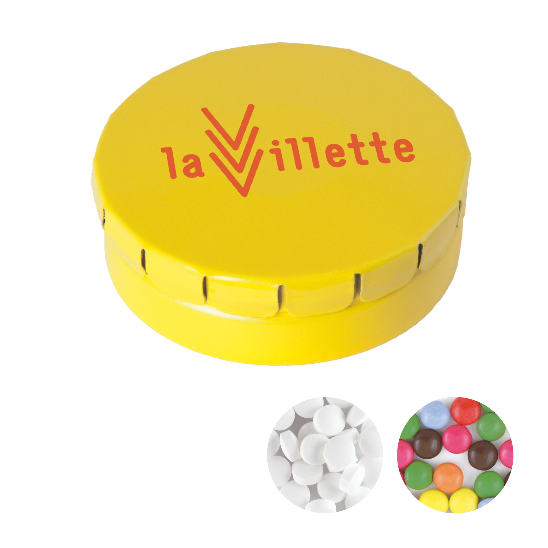 Runde Click-Blechdose Ø 45 mm x 15 mm mit ca. 12 gr. Minties, TAMPONDRUCK. Blechdose aus Metall, erhältlich in einer großen Farbenvielfalt mit verschiedenen Füllungen: Minties, extra strong Minties `Triangle`, Schokocarletties, Jelly Beans, Fruchtherzchen, Schokoperlen gold, knuspriger Schokoladen festival, knusprige schokoladen Juwelen, goldglitzer Milchschokolade, kleine Herzen gold, kleine Herzen rot / weiß, marmorgold Schoko dunkel, mikro Milchschokoladeneier, mini Schokoperlen gold, mini Schokoperlen kupfer, roseglitzer Milchschokolade, silberglitzer Milchschokolade oder sommerkonfetti Schoko dunkel.