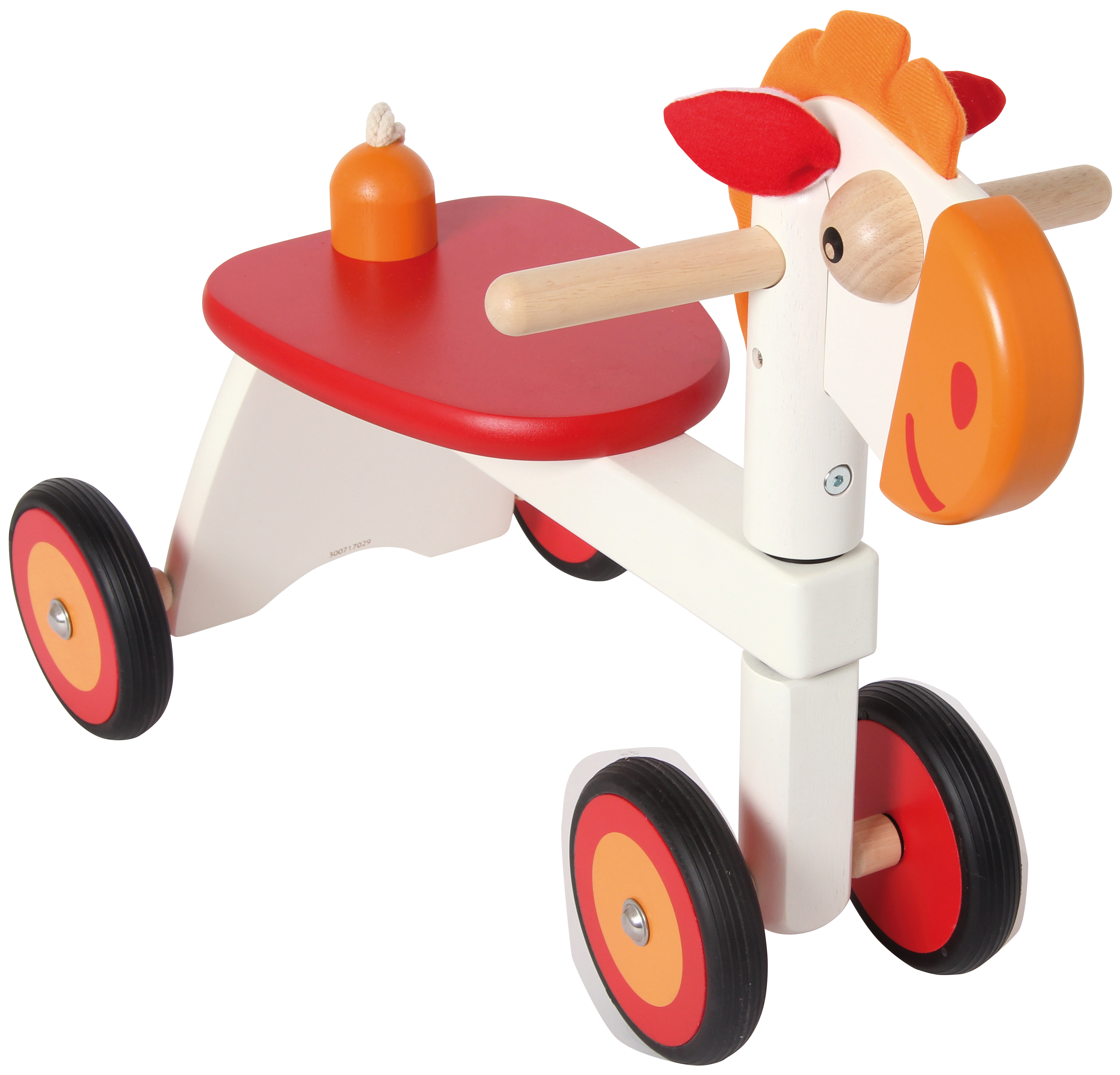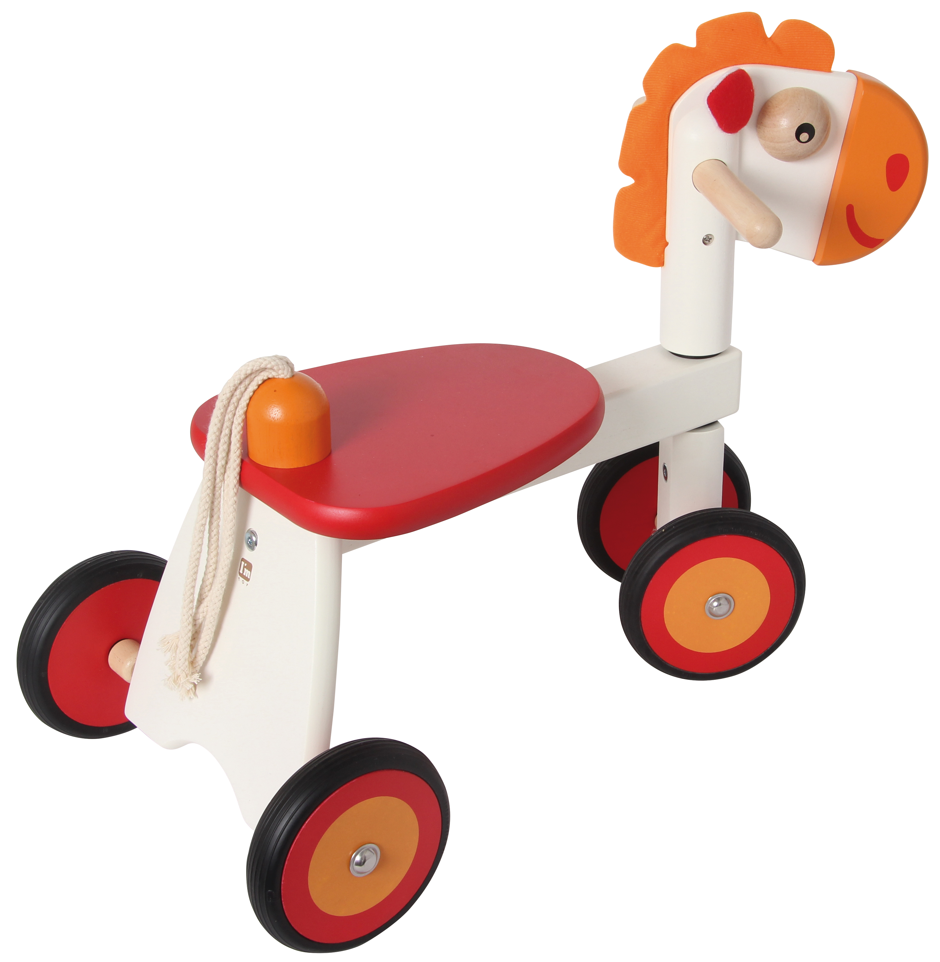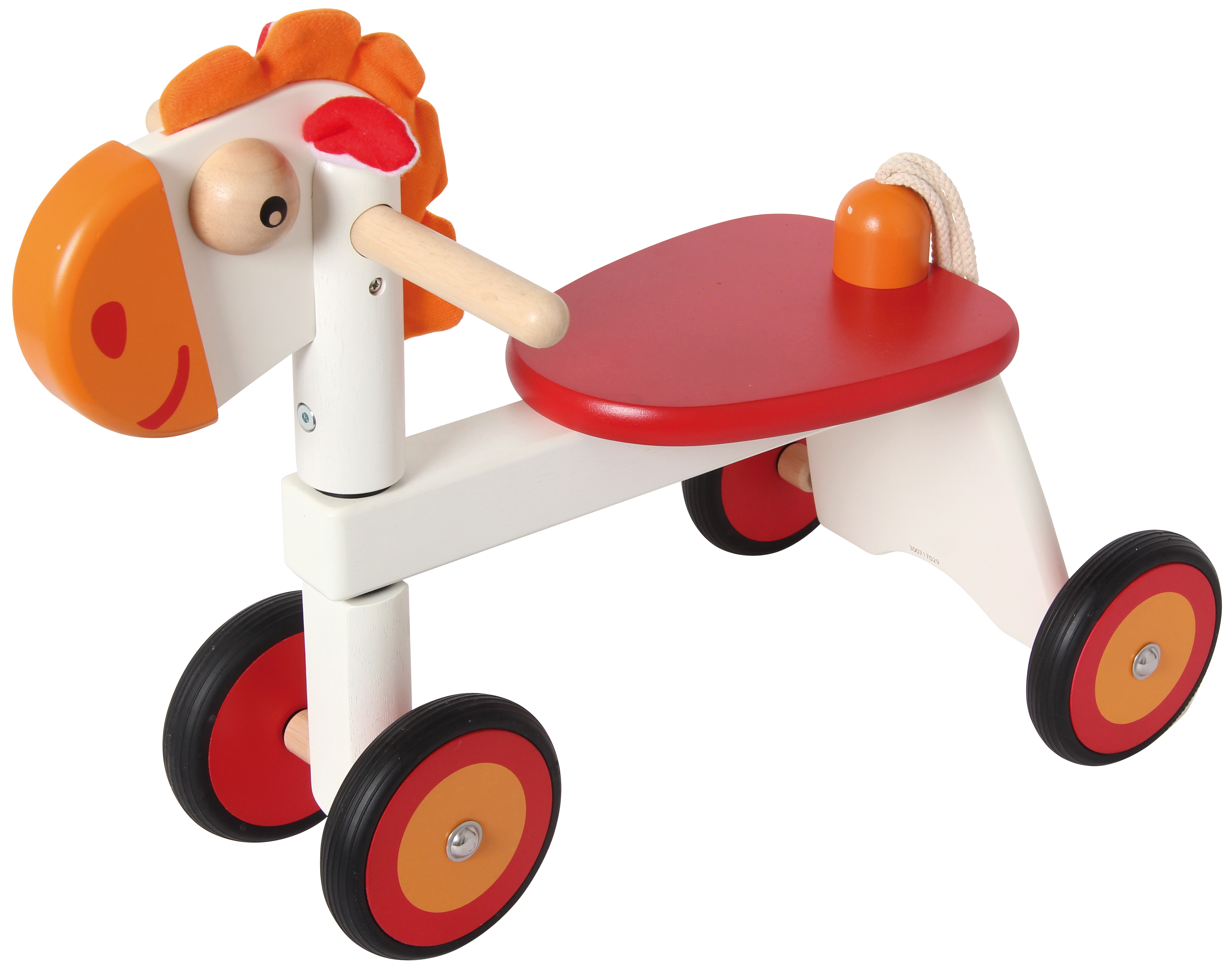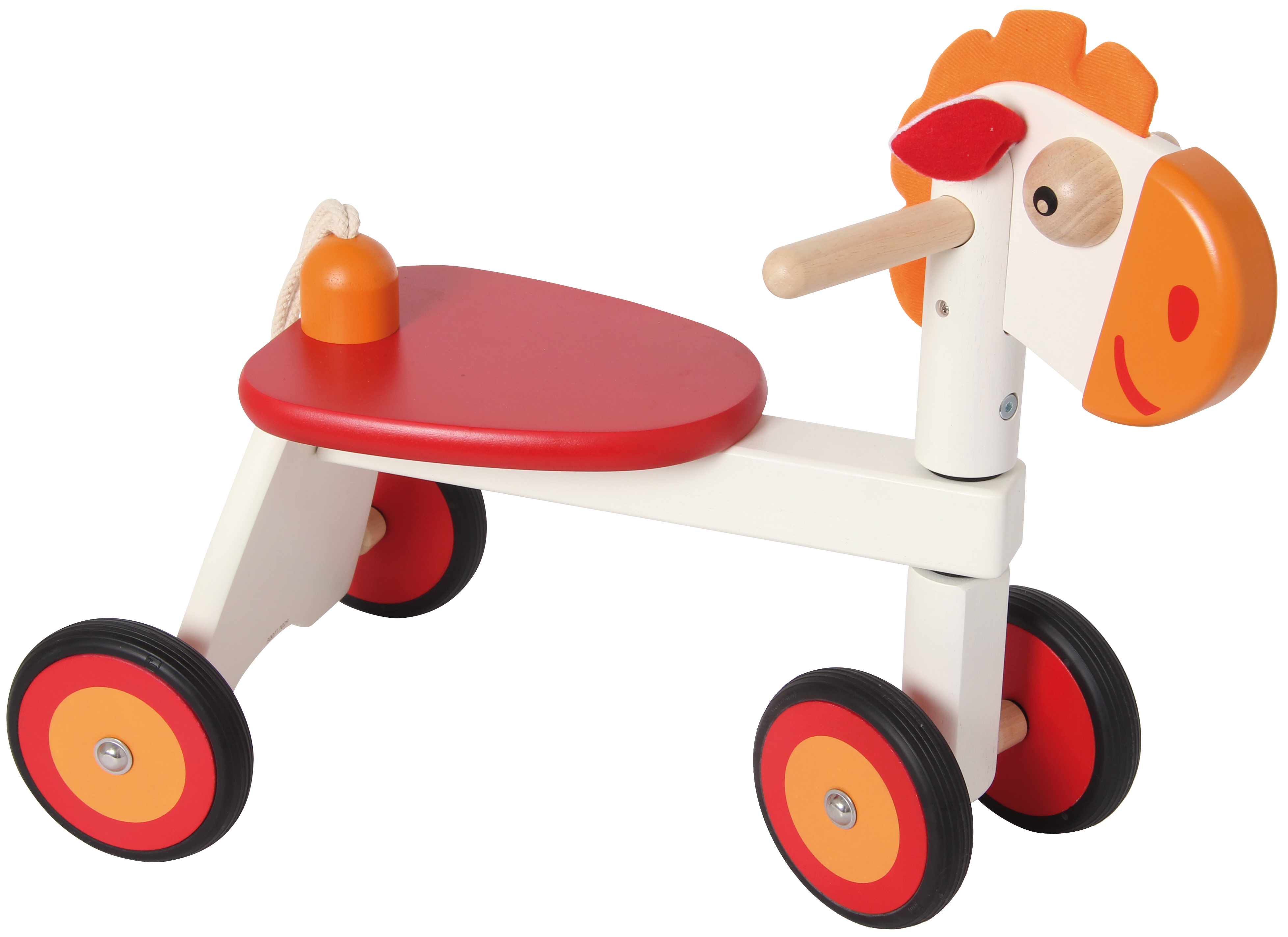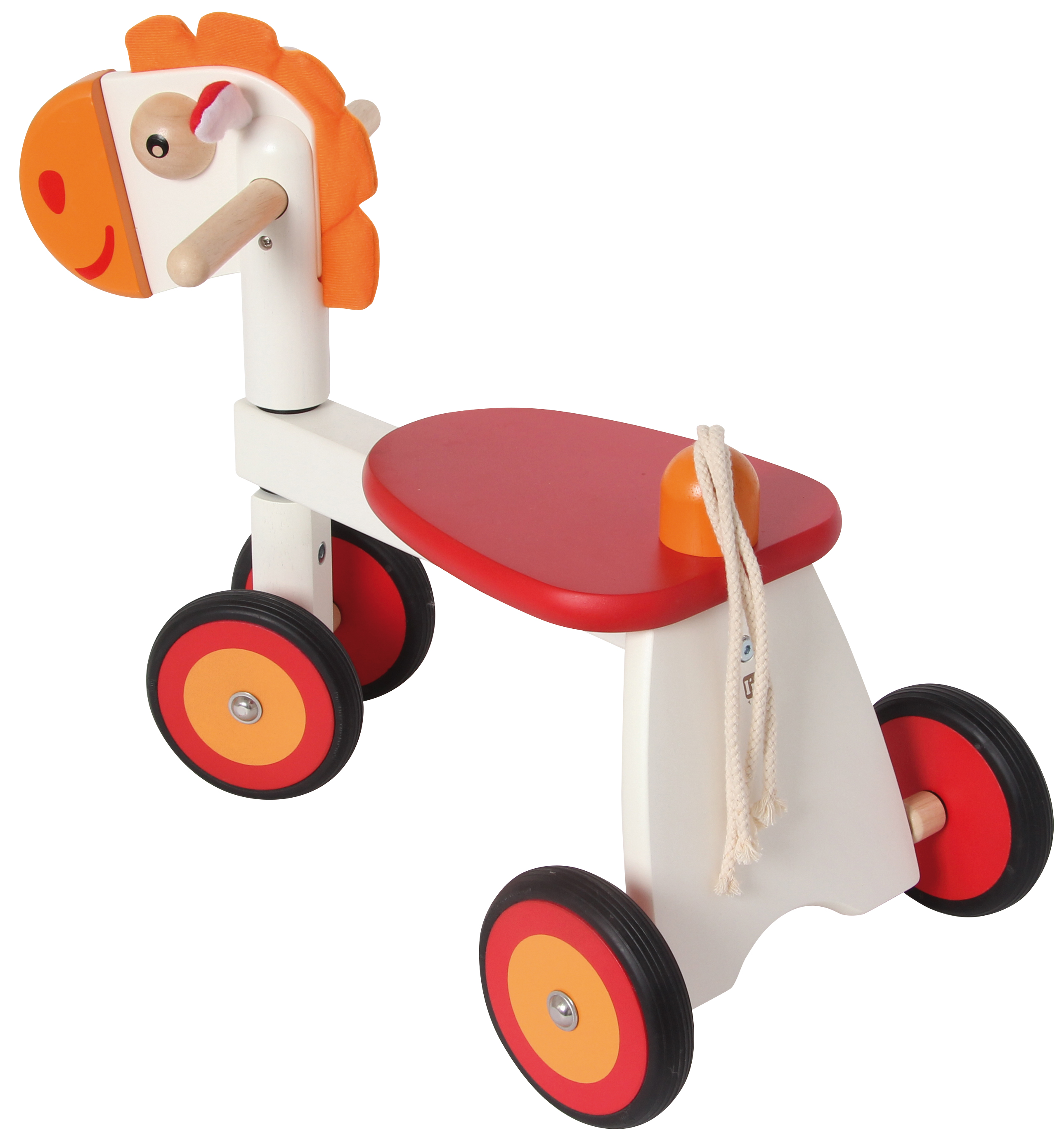 Cooles und robustes Baby-Rutscher-Pferd aus Holz. Beim Spiel mit dem Holzlaufrad trainieren die Jüngsten ihre Körperkoordination, das Raumgefühl, den Gleichgewichtssinn und die Muskulatur. Ab 12 Monaten. Sitzhöhe: 23 cm.