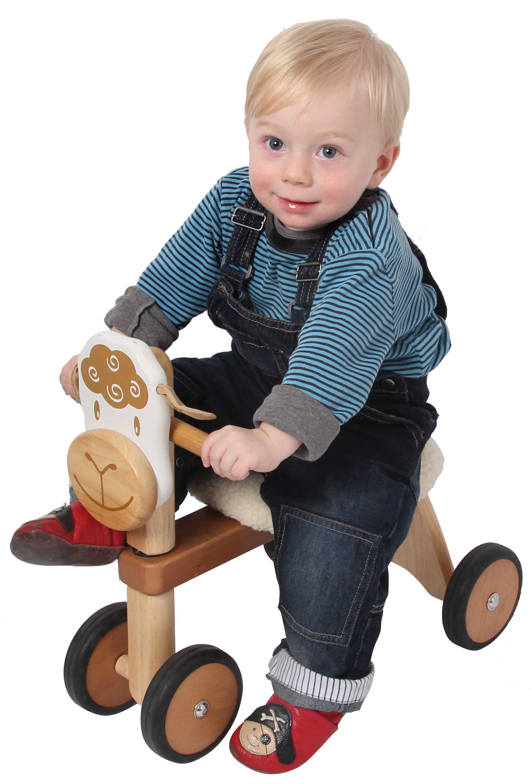 Robuster Baby-Rutscher aus Holz im Tier-Design mit Plüsch-Sitzkissen (abnehm- und waschbar). Beim Spiel mit dem Holz-Laufrad trainieren die Jüngsten ihre Körperkoordination, das Raumgefühl, den Gleichgewichtssinn und die Muskulatur. Ab 12 Monaten. Sitzhöhe: 23 cm.
