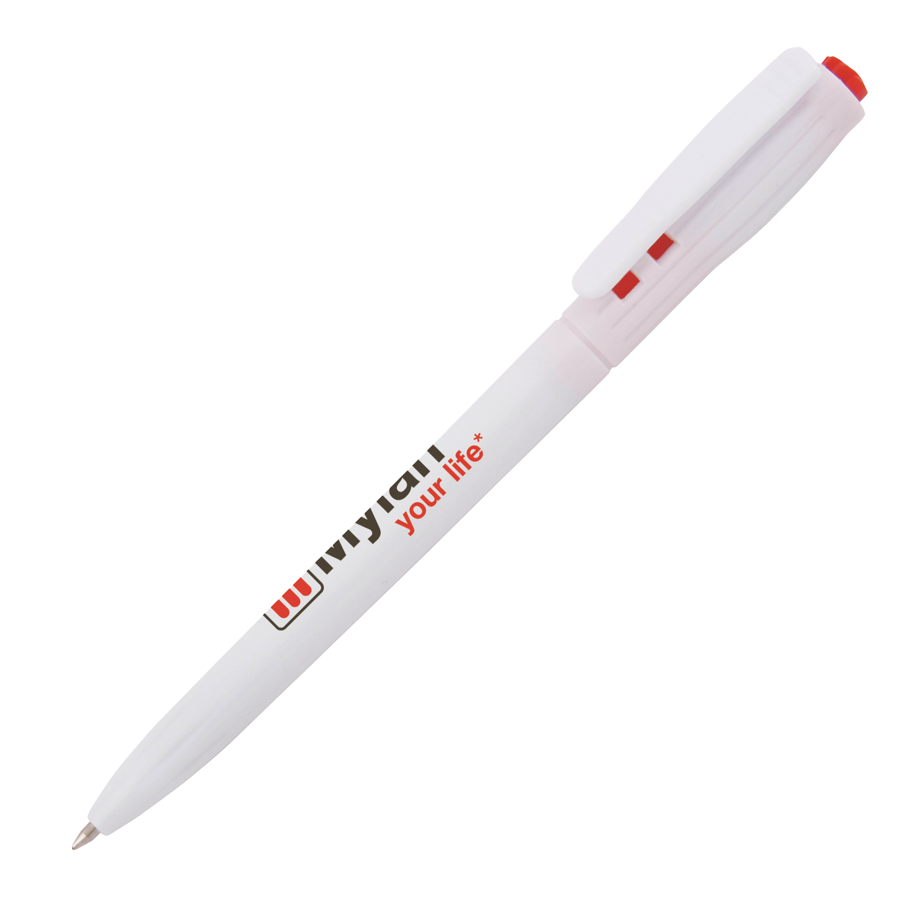 SAL HC Kunststoff Kugelschreiber Peekay mit farbigem Drücker und mit blauschreibender Plastikmine.