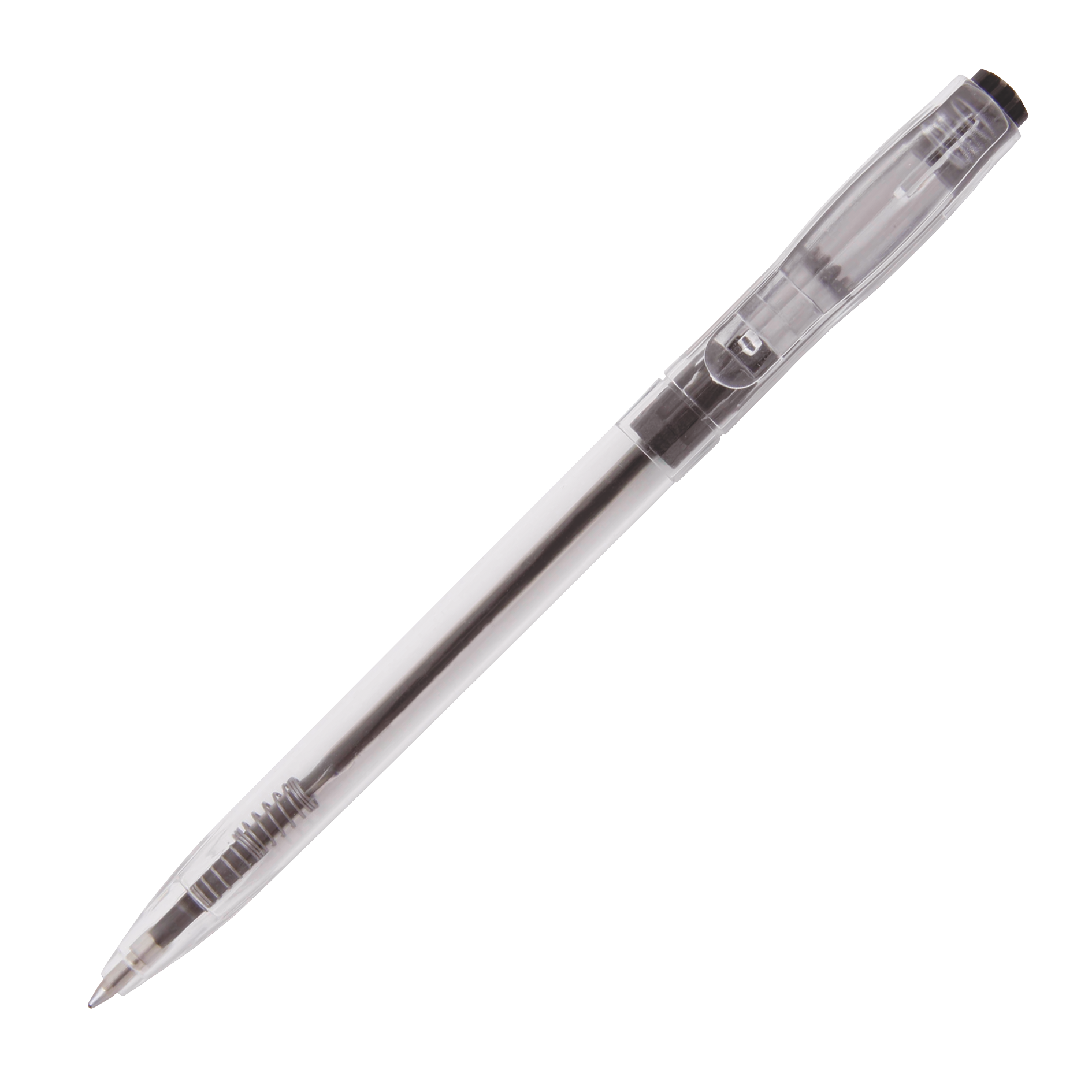 SAL transparent Kunststoff-Kugelschreiber Peekay, mit schwarzem Drücker, lieferbar in mehreren Farben, mit blauschreibender Plastikmine.