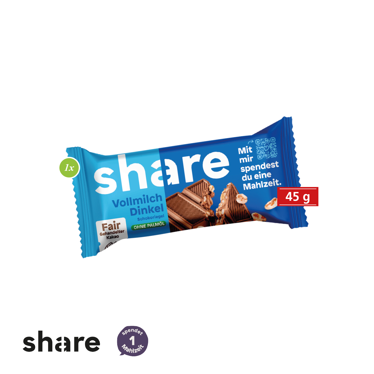 1 Share Schokoriegel Vollmilch-Dinkel (45 g).