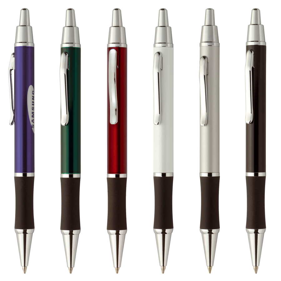 SICILIA Metall Kugelschreiber Peekay. Metall-Design Kugelschreiber mit Gummigriffzone und blauschreibender -Metall-Großraummine.