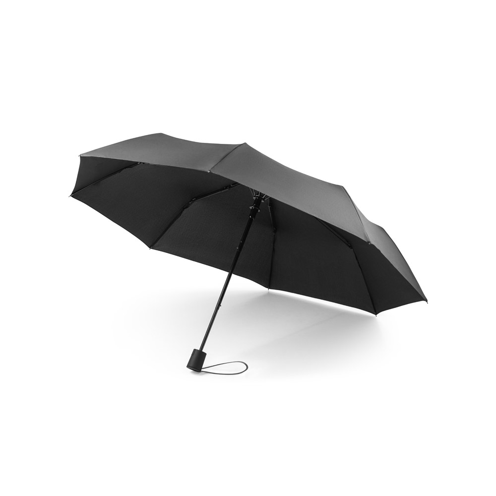 2-in-1-Regenschirm mit Einkaufstasche inklusive. Dieser ist aus recyceltem Polyester. Der 21''-Taschenschirm aus recyceltem Polyester (100 % rPET) Pongee 190T, Fiberglasstäbe, Metallmast und Griff aus recyceltem ABS (35 % recycelt). Der Taschenschirm hat ein 3-schrittiges Schliesssystem, mit automatischer Öffnung und ist windfest. Die Einkaufstasche ist aus recyceltem Polyester, die zum Transport aufbewahrt oder separat verwendet werden kann. Ø 970 x 290 mm | Beutel: 420 x 390 mm