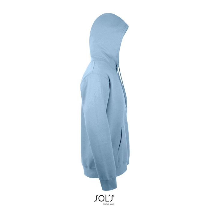 SOL'S SNAKE Unisex Hoodie / Kapuzenpullover. Moderne Passform. Rippenbündchen am Saum und an den Ärmeln mit Elastan, Kängurutasche, Kapuze mit Ton-in-Ton-Kordelzug. No-Label. Material: 280g / m² 50% ringgesponnene Baumwolle - 50% Polyester, innen gebürstet.