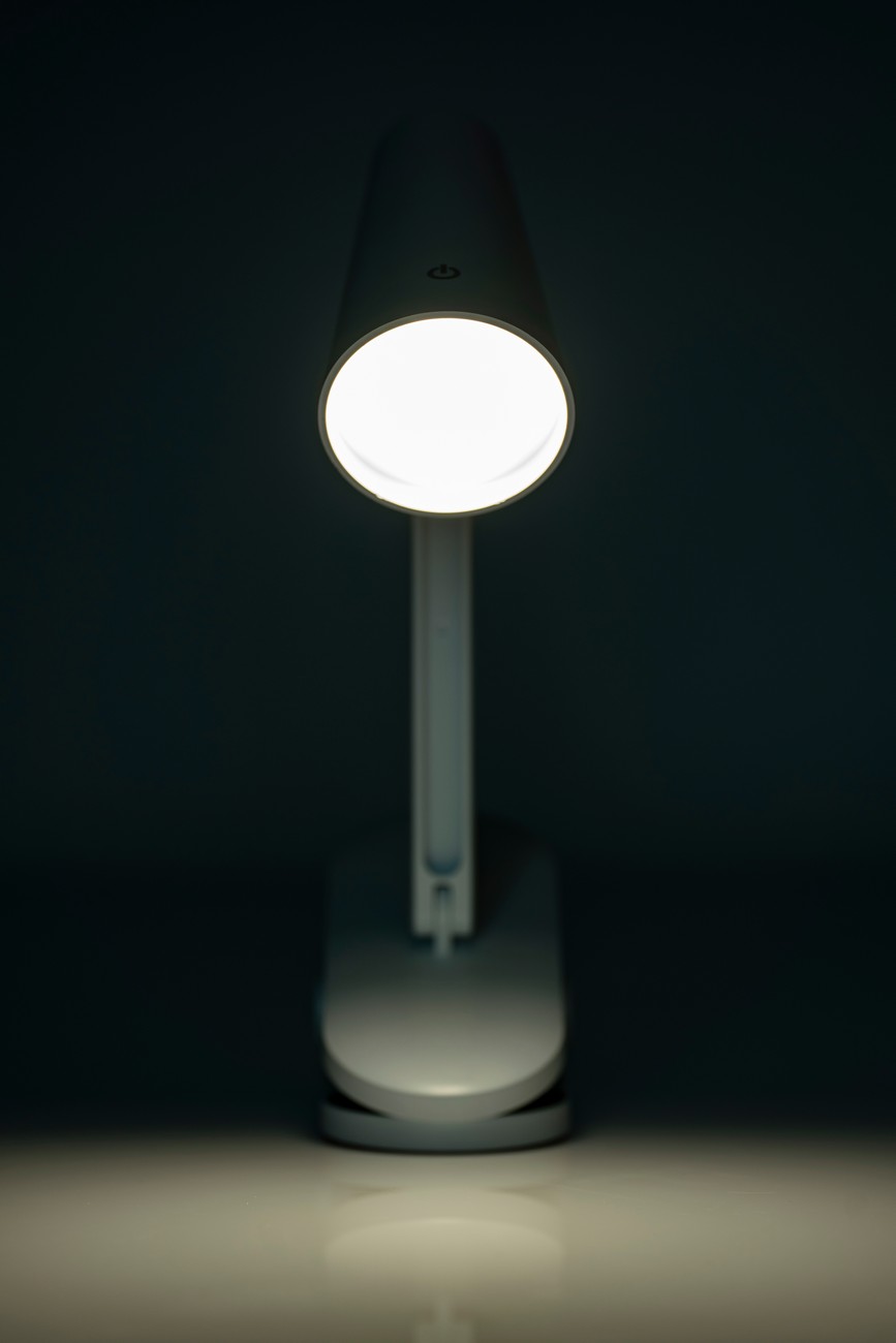 Mit Clip bzw. Ständer, 1200mAh Batterie. 12 SMD-LED Leuchteinheiten, 3 Lichtfarben, dimmbar. Material: ABS Gewicht: 199 g. Maße: 90 x 60 x 232 mm. Werbeanbringung: auf dem Leuchtenkopf, 12 x 40 mm (D2); auf der Oberseite der Klemme, 20 x 30 mm (D3); Dieses Produkt unterstützt aktiv den Ausgleich der Entstehenden CO2-Emissionen durch zertifizierte Klimaschutzprojekte.