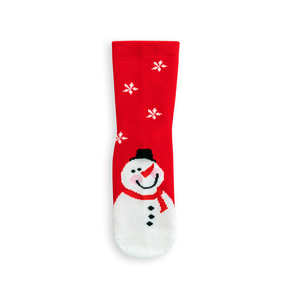 Weihnachtsstrümpfe für Kinder. Erhältlich in unterschiedlichen Grössen. Geliefert mit veredelbarem Etikett aus Kraftpapier. Zusammensetzung: Baumwolle (78%), Polyester (17%) und Elasthan 5(%). Größen: S (23-26), M (27-30), L (31-34)
