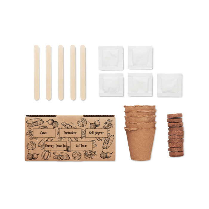 Saat-Set Salat. Inkl. Samen für Zwiebeln, Gurken, Paprika, Kirschtomaten und Salat. Hergestellt in der EU. Inkl. Bodengrund-Scheiben.