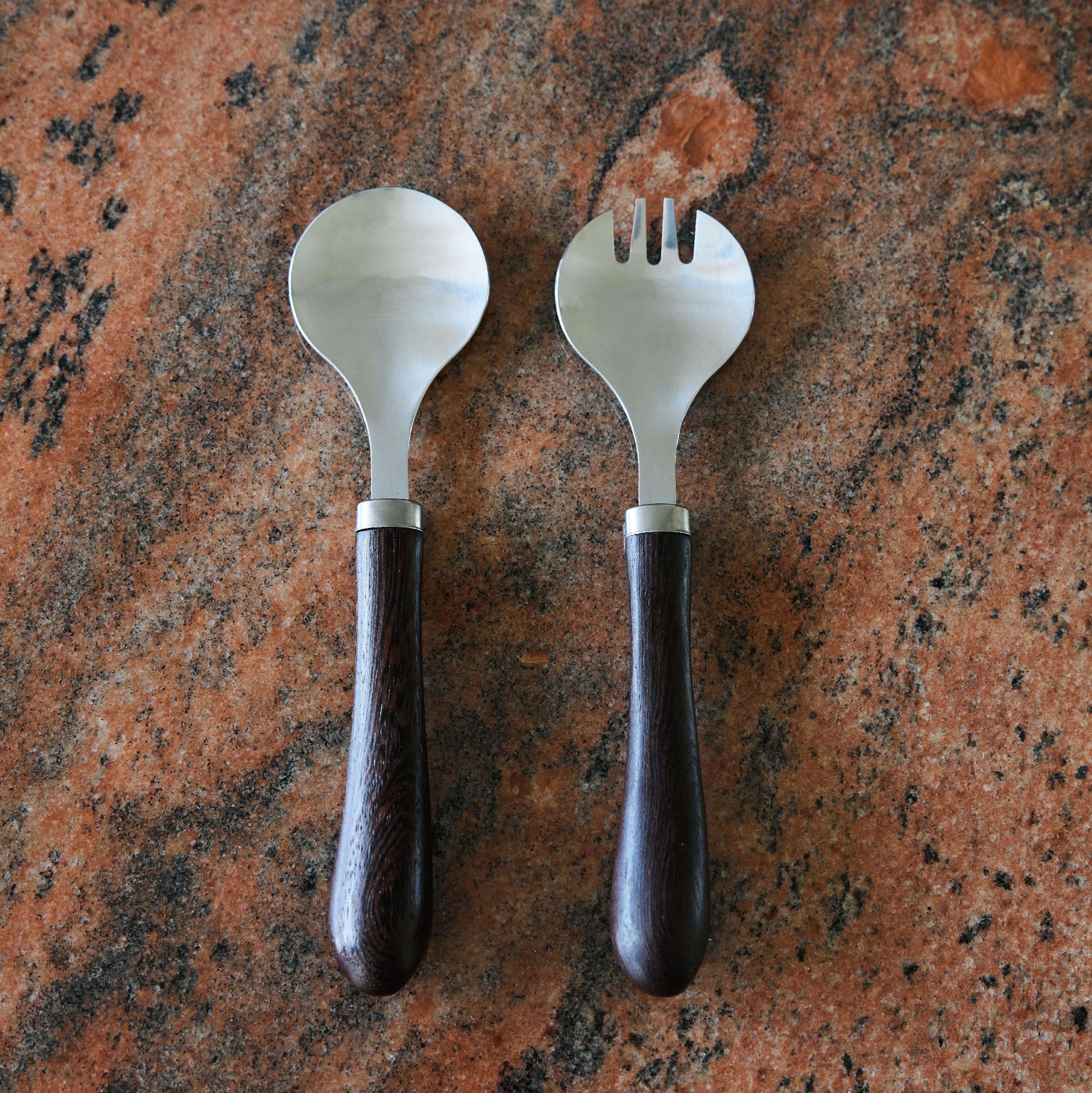 Salatbesteck in unserer Lieblingskombination aus rostfreiem Stahl und einem schön geschwungenen Griff aus schokoladenbraunem Wengeholz. Die Kombination ist aufregend, ein Klassiker, aber mit einem robusten Touch. Wird im 2er-Pack geliefert.