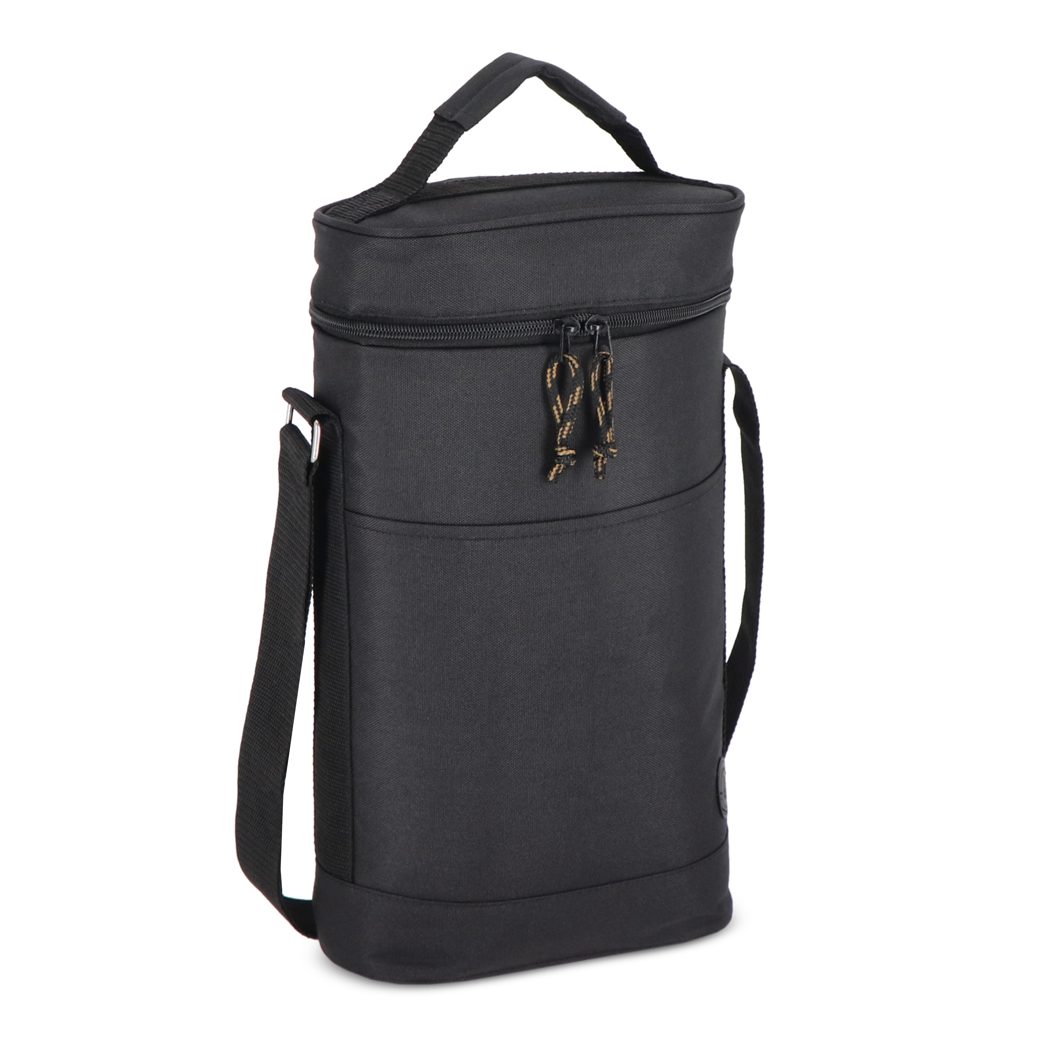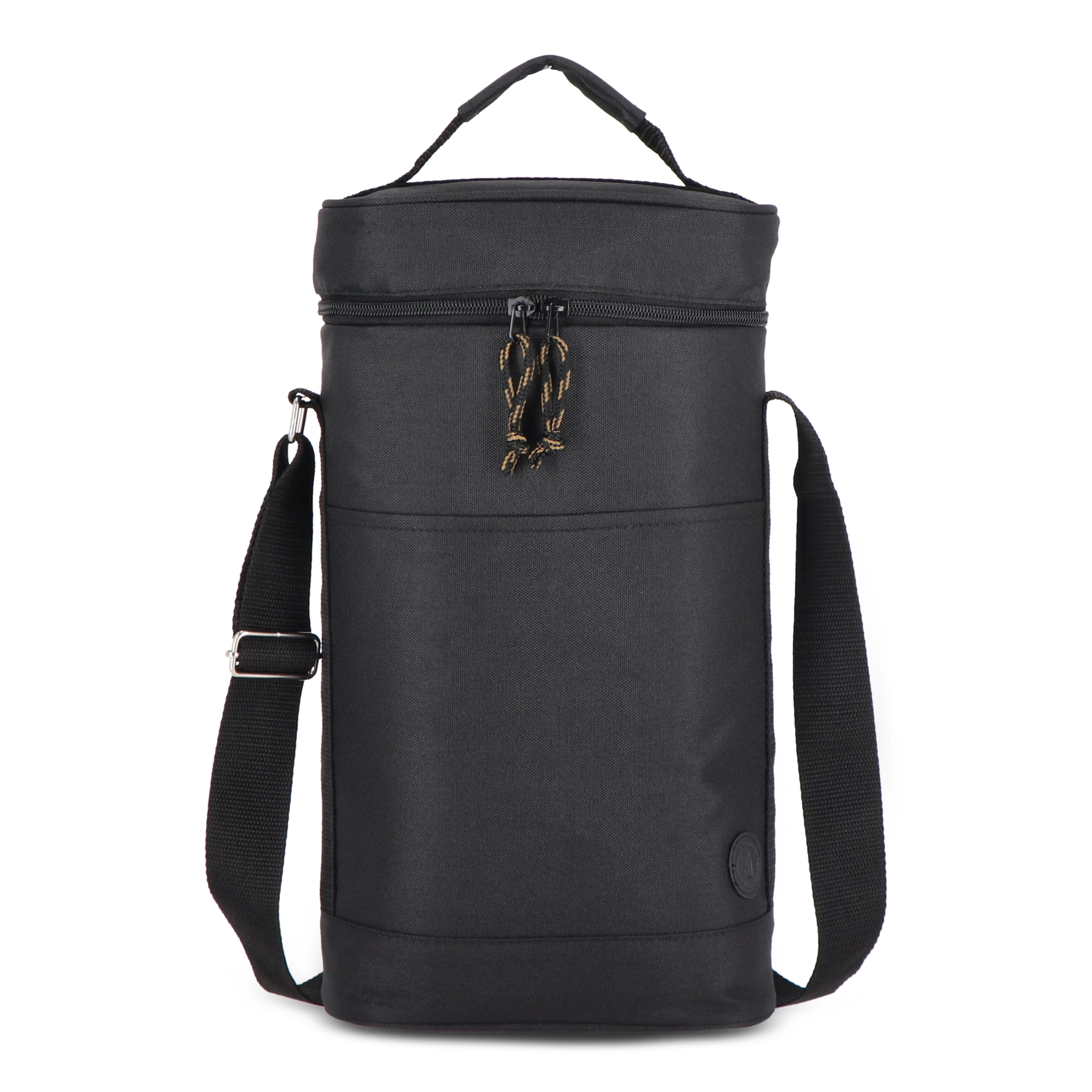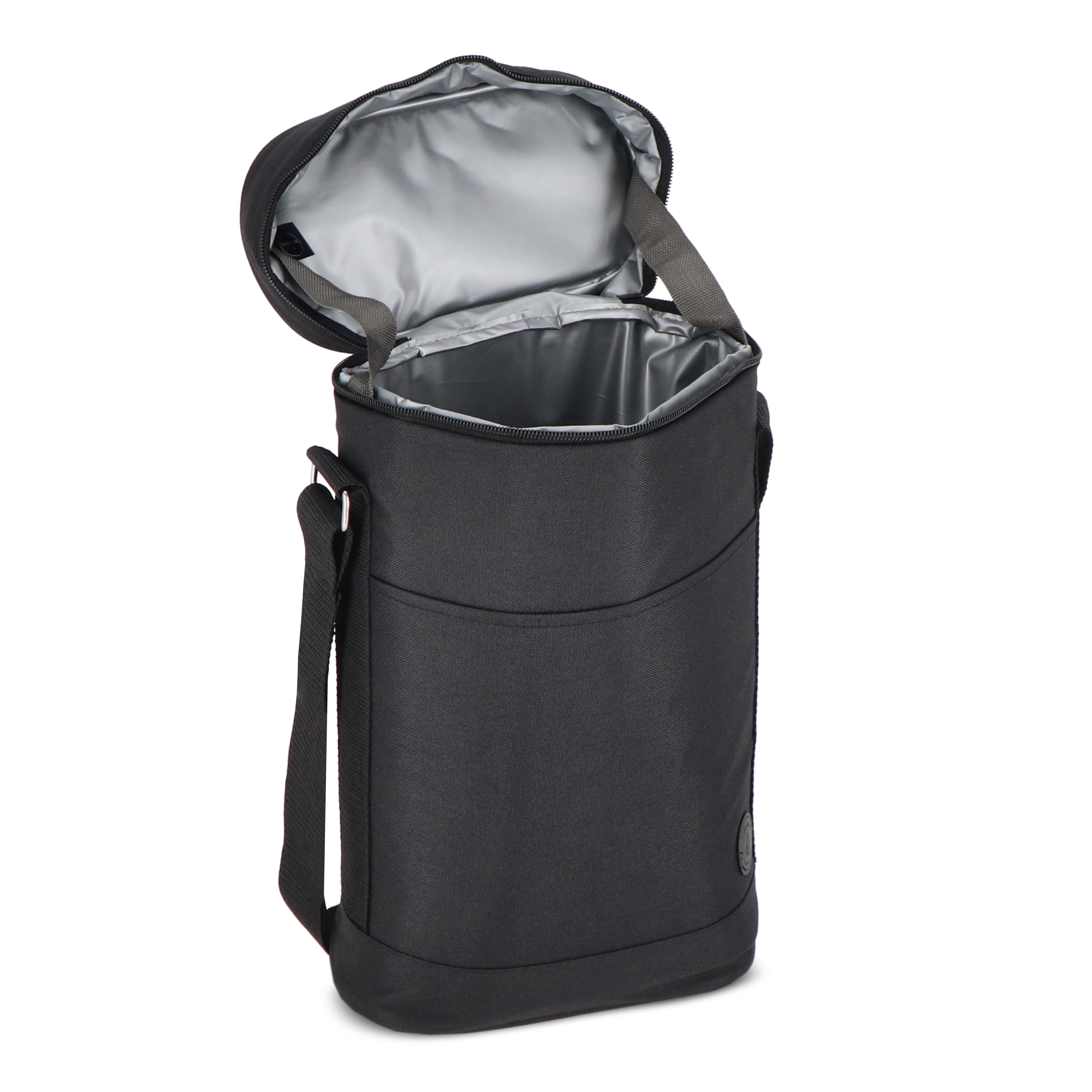 Praktische und sportliche Kühltasche aus grünem rPET-Material. Stilvolle Details in Beige und Schwarz. Ein Modell, das z. B. für zwei Weinflaschen oder 1,5-Liter-PET-Flaschen verwendet werden kann. Sie hat sowohl einen Griff als auch einen verstellbaren Schultergurt.