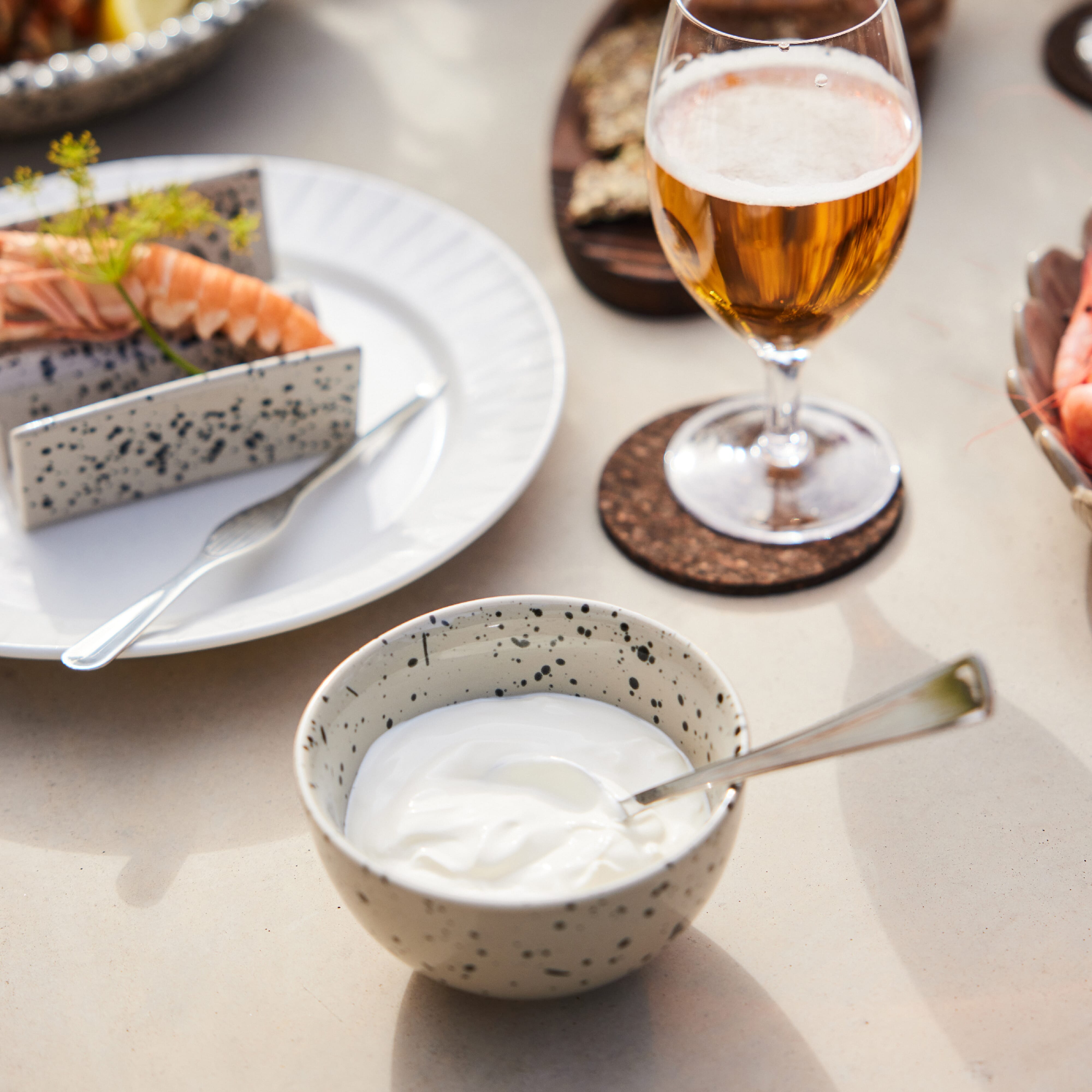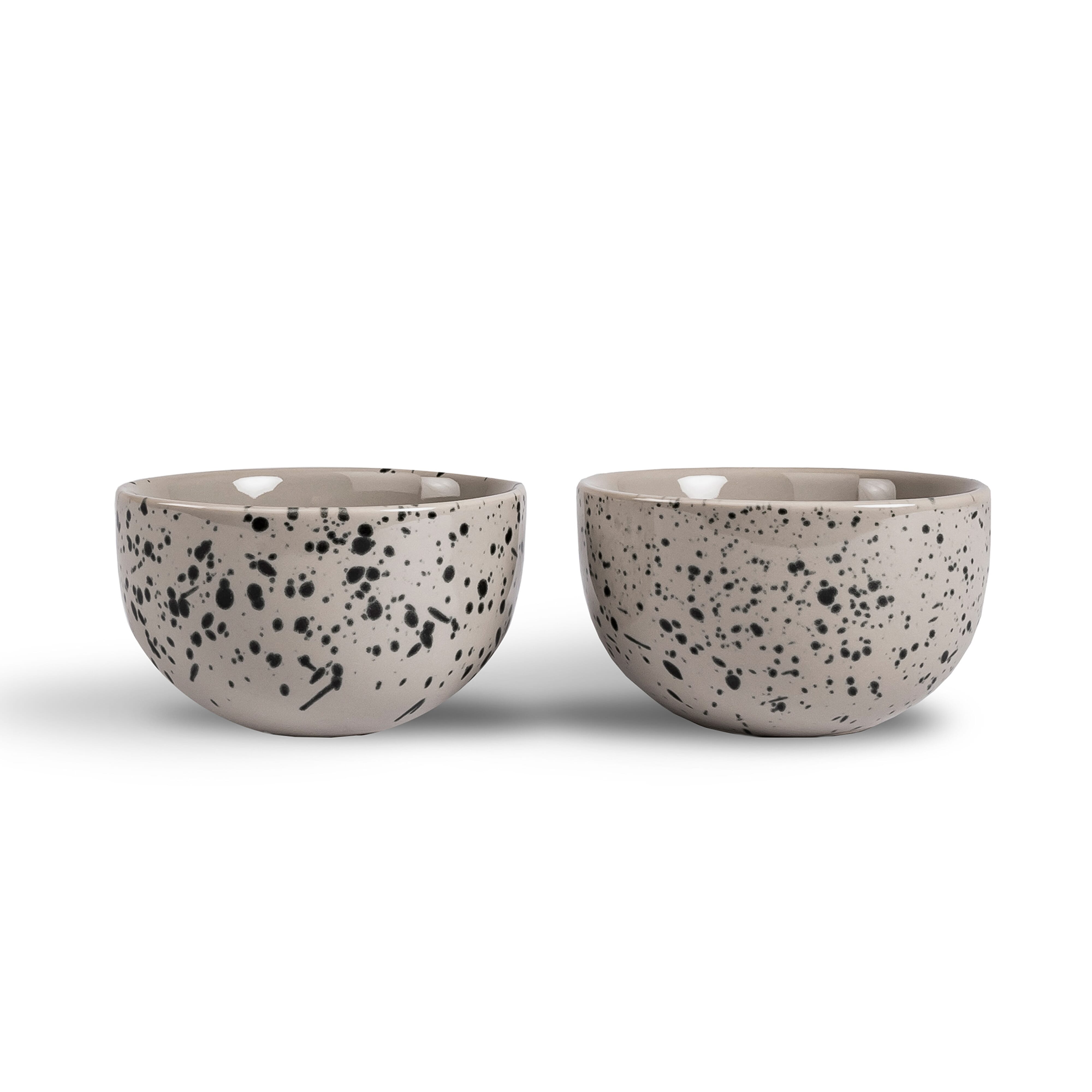 Eine handgefertigte kleine Schale für Snacks. Die Farbe ist ein beige / grauer Farbton mit einem schönen Spritzmuster in Schwarz. Diese Schale hat nur an der Außenseite ein Muster, um Harmonie und Charakter zwischen den verschiedenen Teilen der Serie zu schaffen. Hergestellt aus Stein. Verkauft im 2er-Pack. Da die Ditte-Schalen handgefertigt sind, können Farbe und Oberfläche von Produkt zu Produkt variieren. Jedes Produkt ist einzigartig in seinem Aussehen.