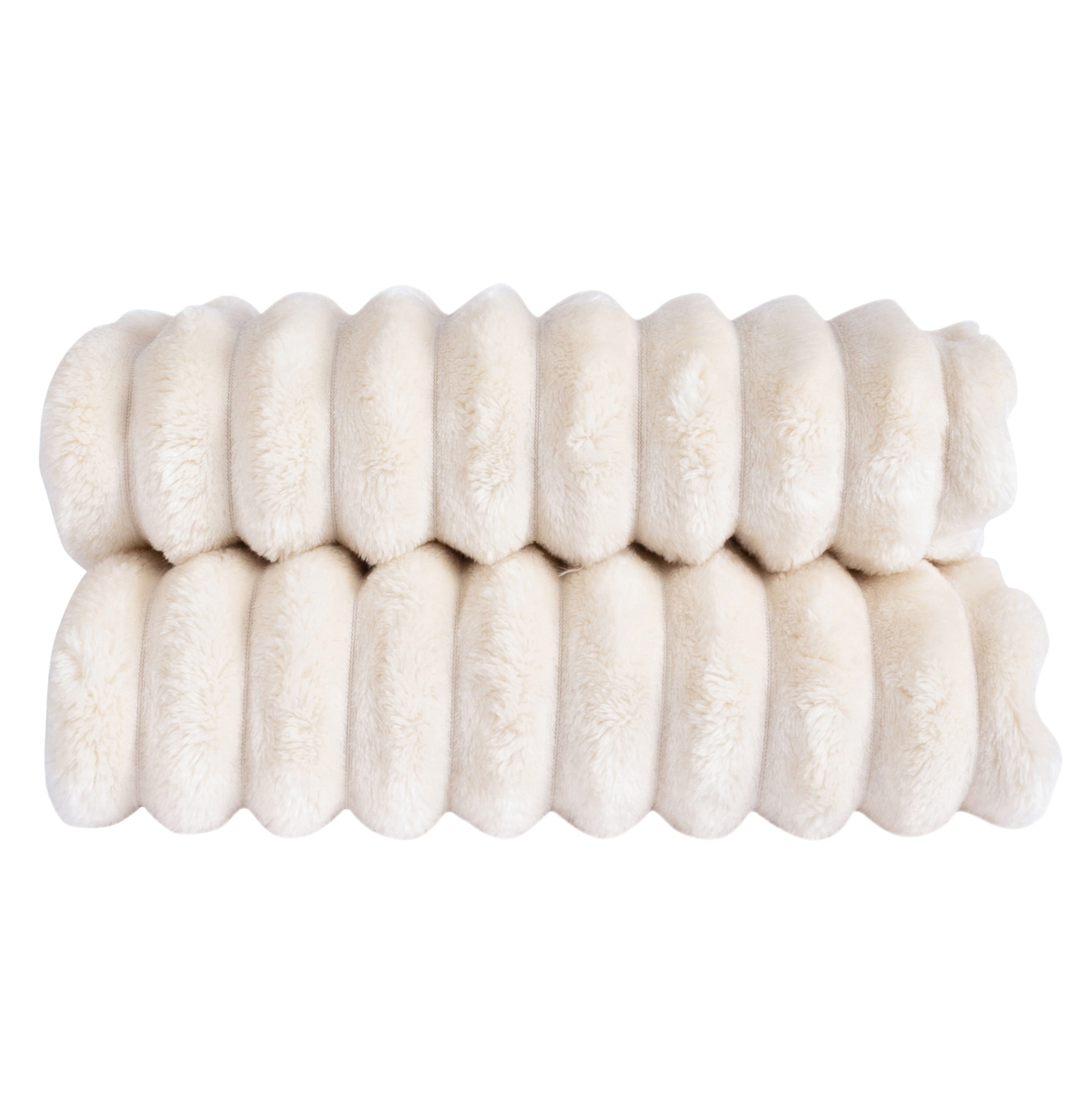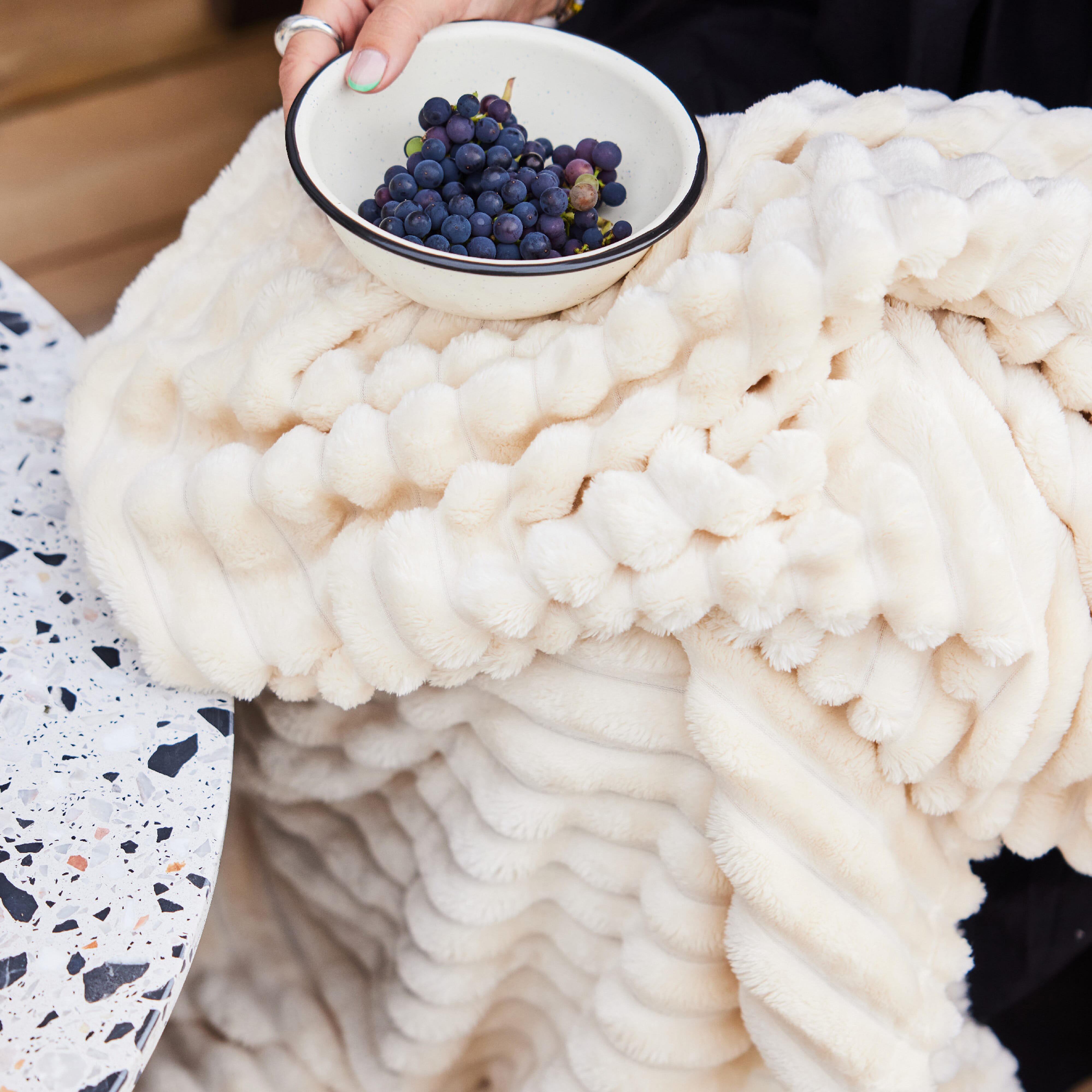 Esther ist das perfekte Fleece-Plaid. Ein dickeres beiges Fleece-Plaid mit Streifen für einen klassischen Look. Weich, warm und einfach überall hin mitzunehmen, drinnen oder draußen.