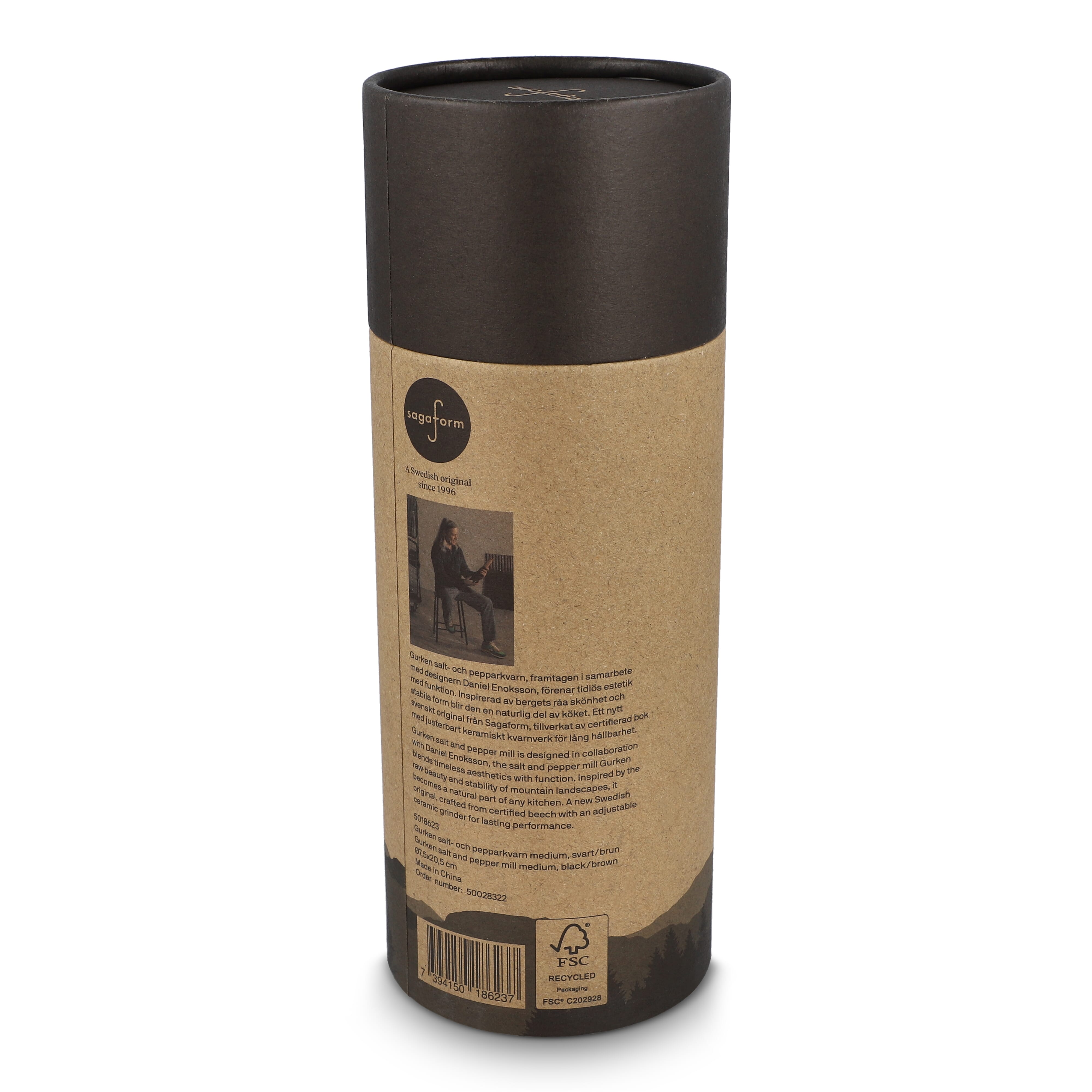 Die Sagaform Salz- oder Pfeffermühle "Gurken" medium aus Holz, die von Daniel Enoksson entworfen wurde. Inspiriert von Berglandschaften hat die Mühle eine konische Form mit einem zeitlosen Design. Sie besteht aus zertifiziertem Buchenholz und verfügt über einen einstellbaren Keramikmahlwerk. Höhe: 20,5 cm. Wird in einer luxuriösen Geschenkverpackung geliefert.